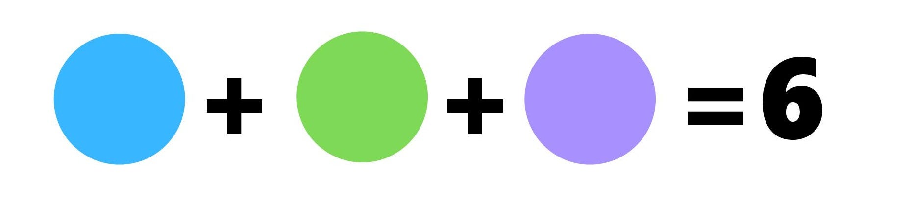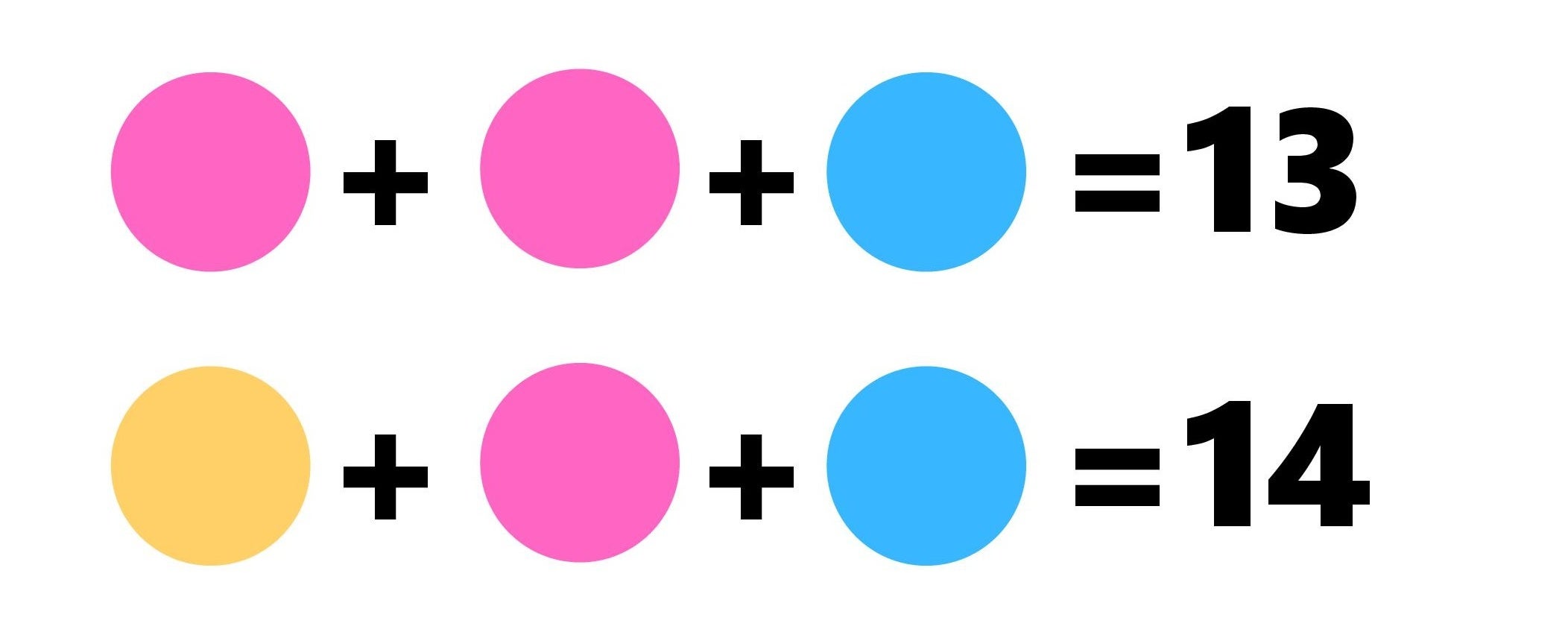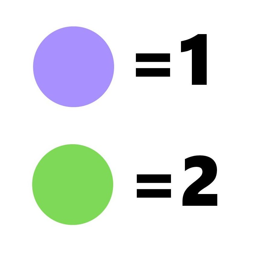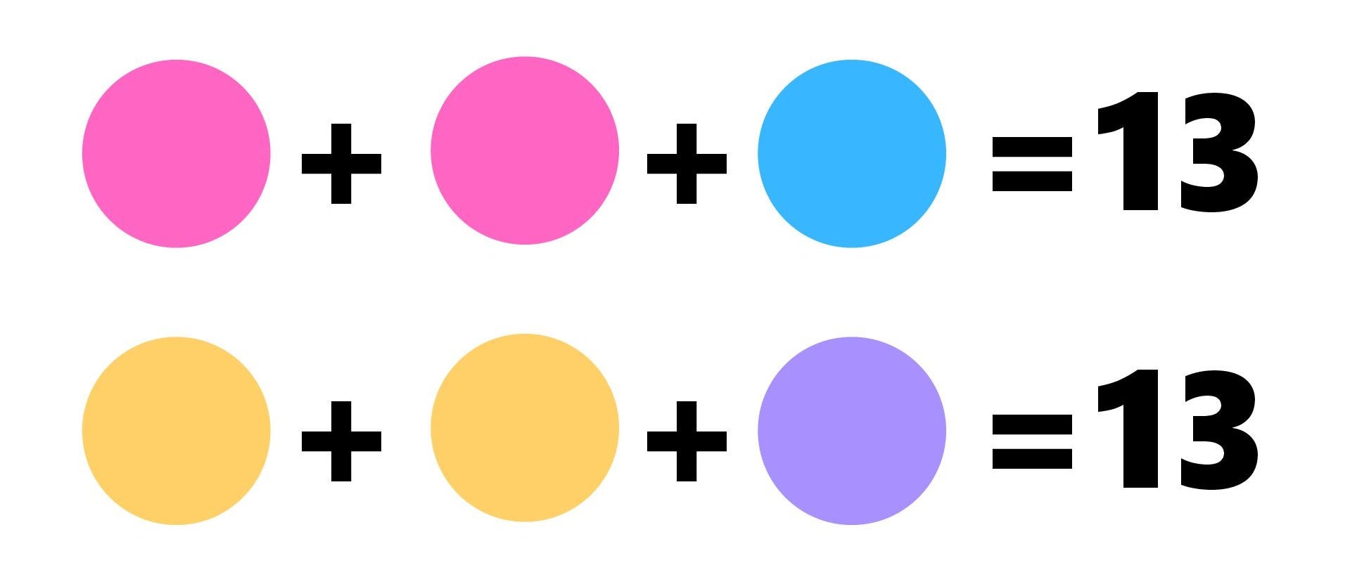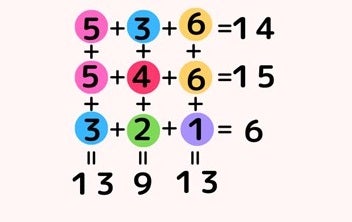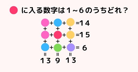 6色の●がそれぞれタテヨコ足し算されて合計だけがわかっています口笛笑い