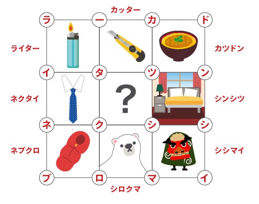 隣りあったイラストの共通の文字を 共通の〇に入れていくと・・・