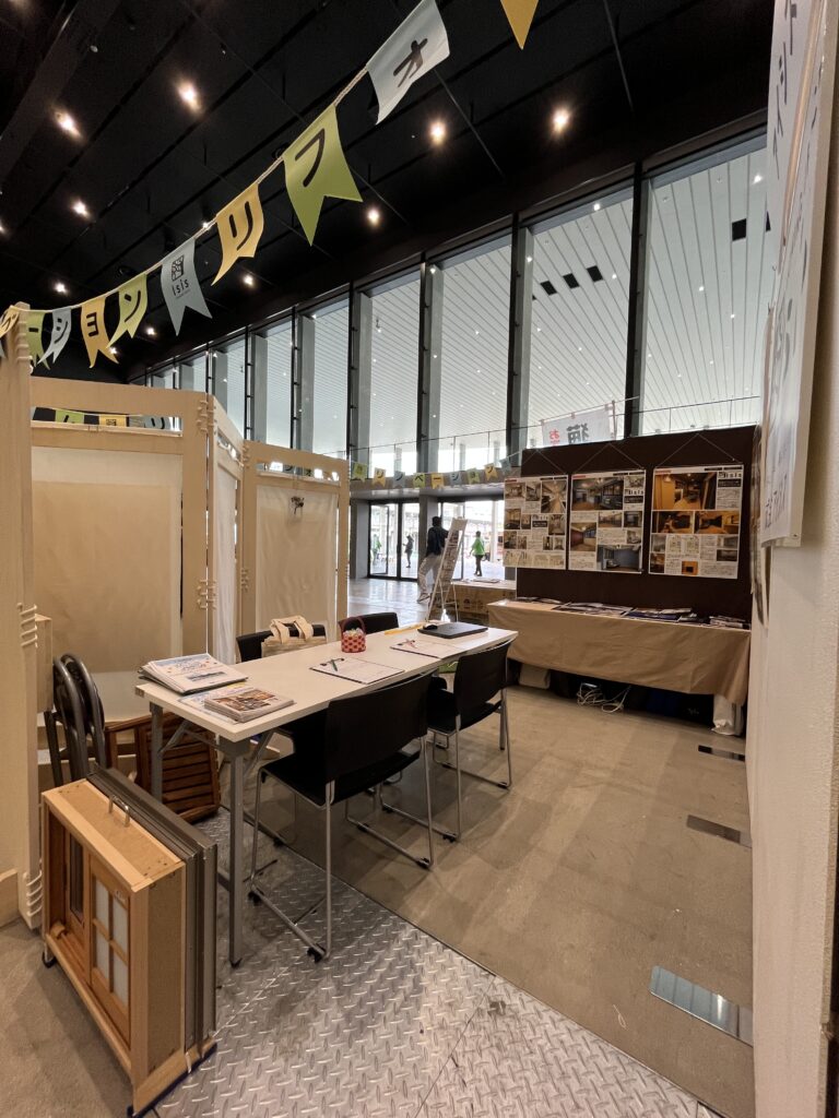 初めての出展の際に手作りしたパーテーションを今回も設置し、