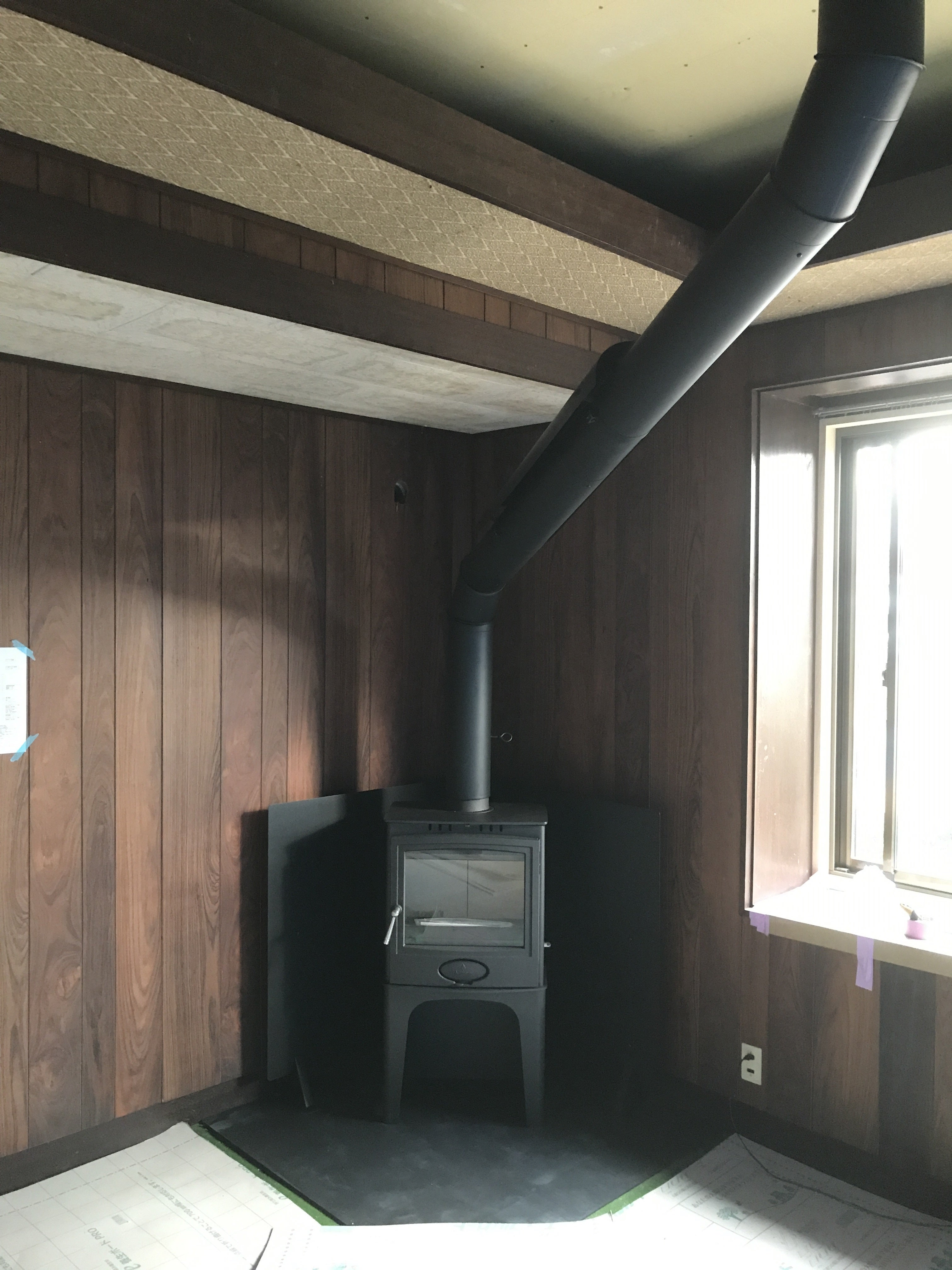 今回 薪ストーブの設置工事もさせていただきました![]()
