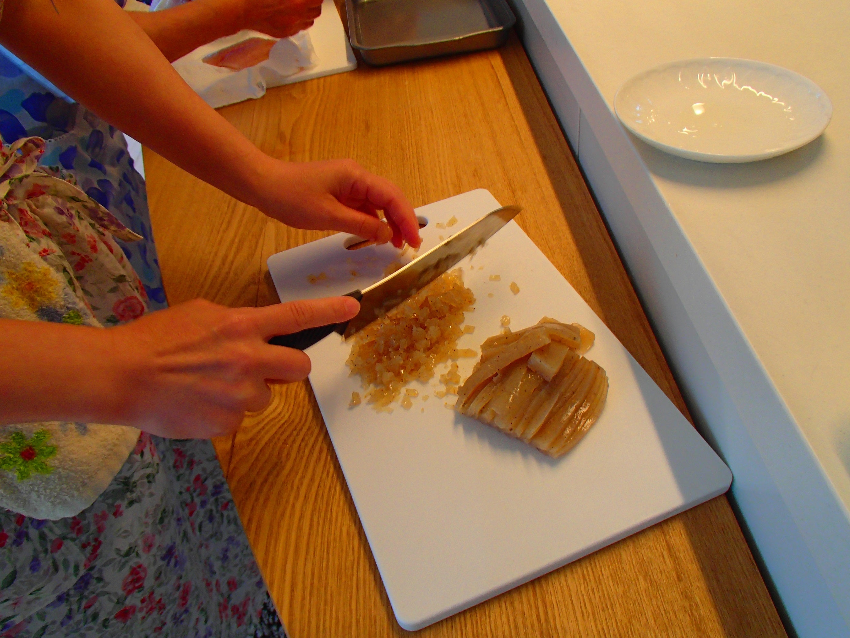 オリーブオイルをひいたフライパンで 焼いていきます![]()