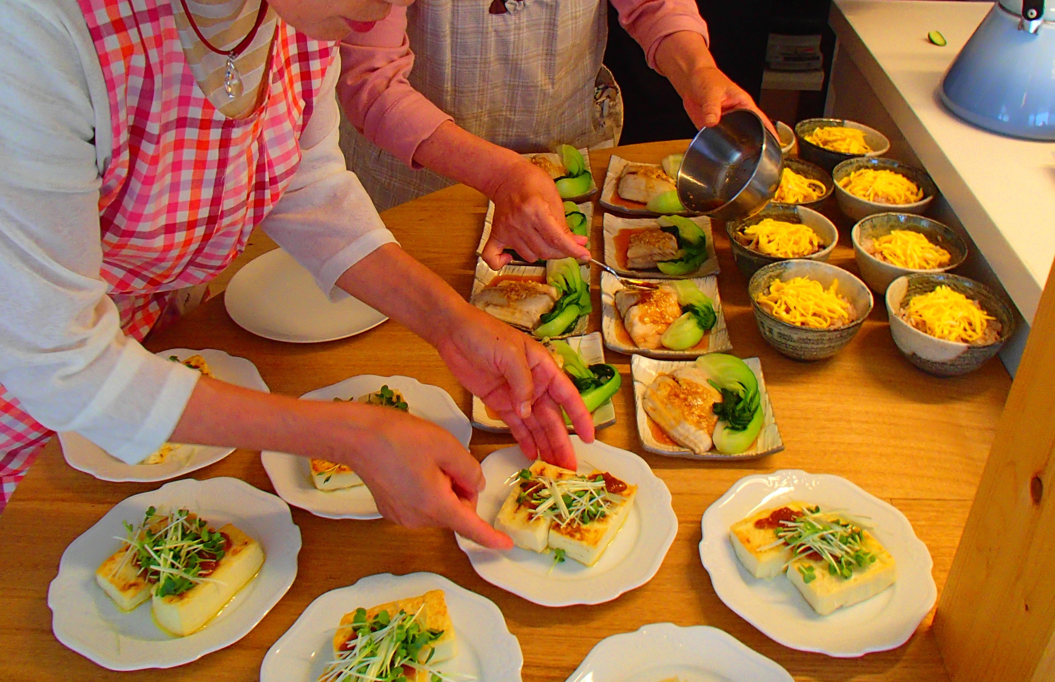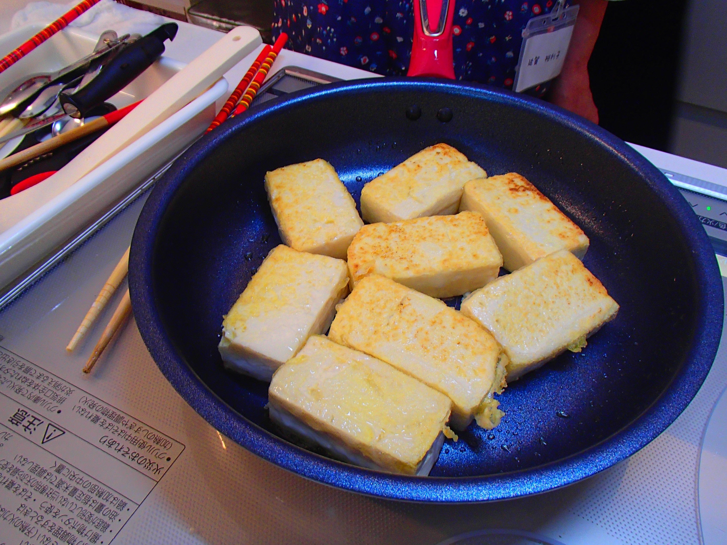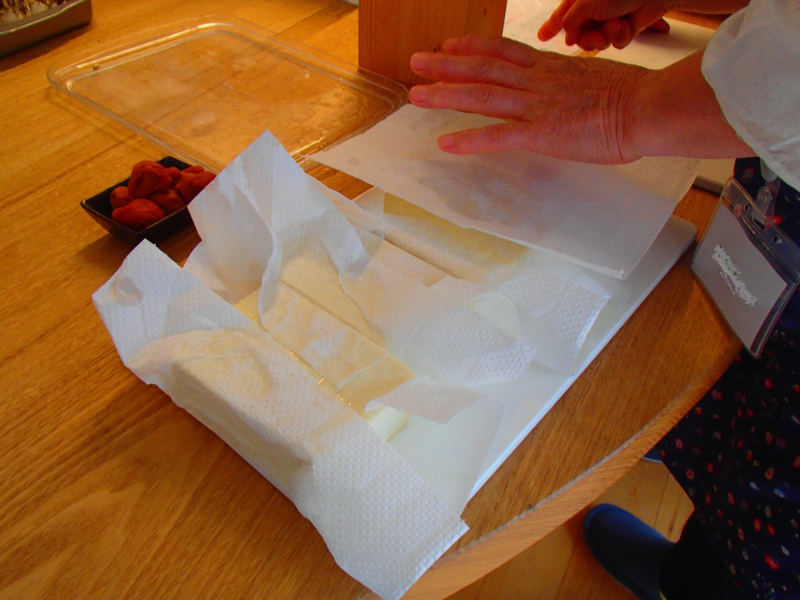 さて、こちらは 木綿豆腐の水気を切ってもらってます![]()