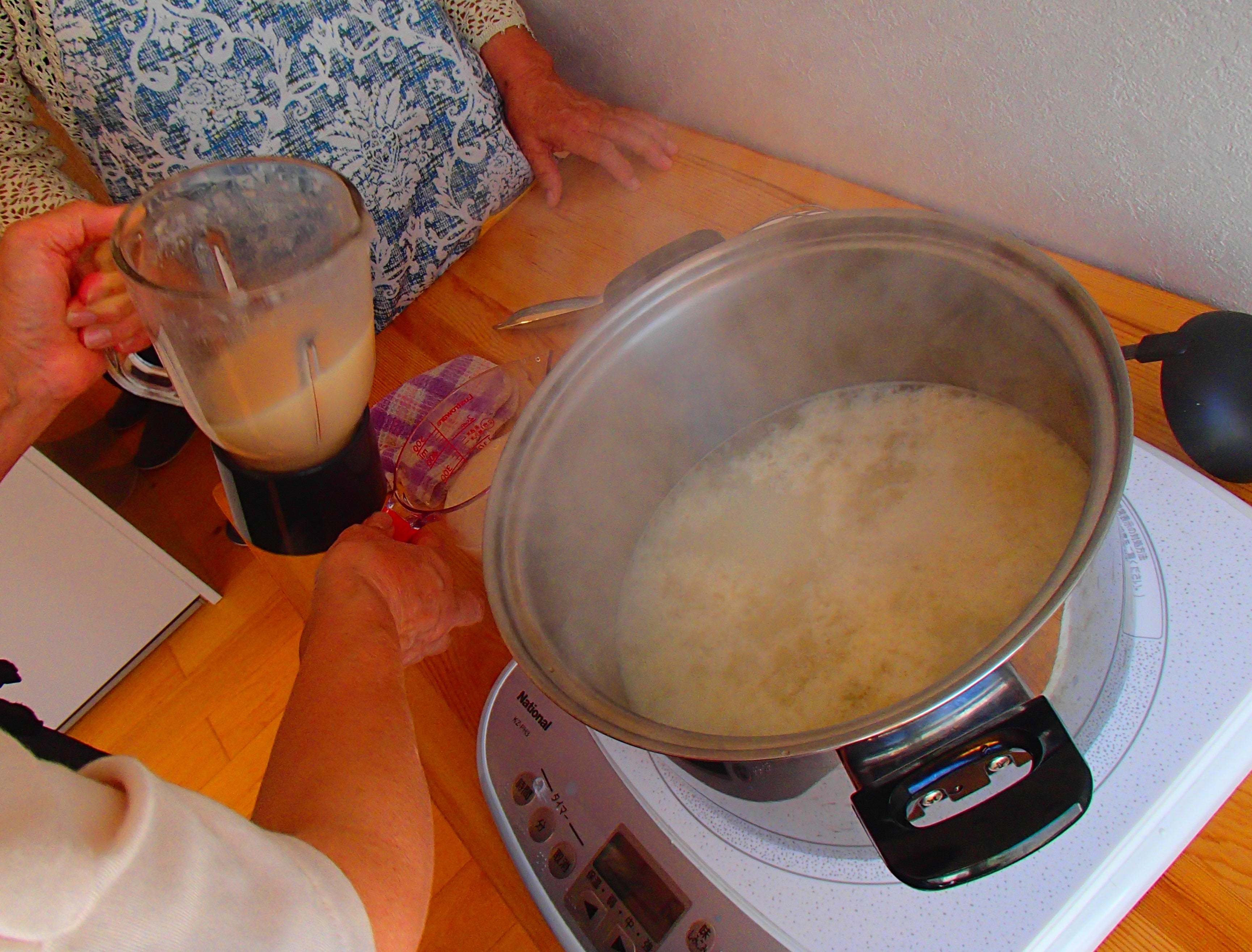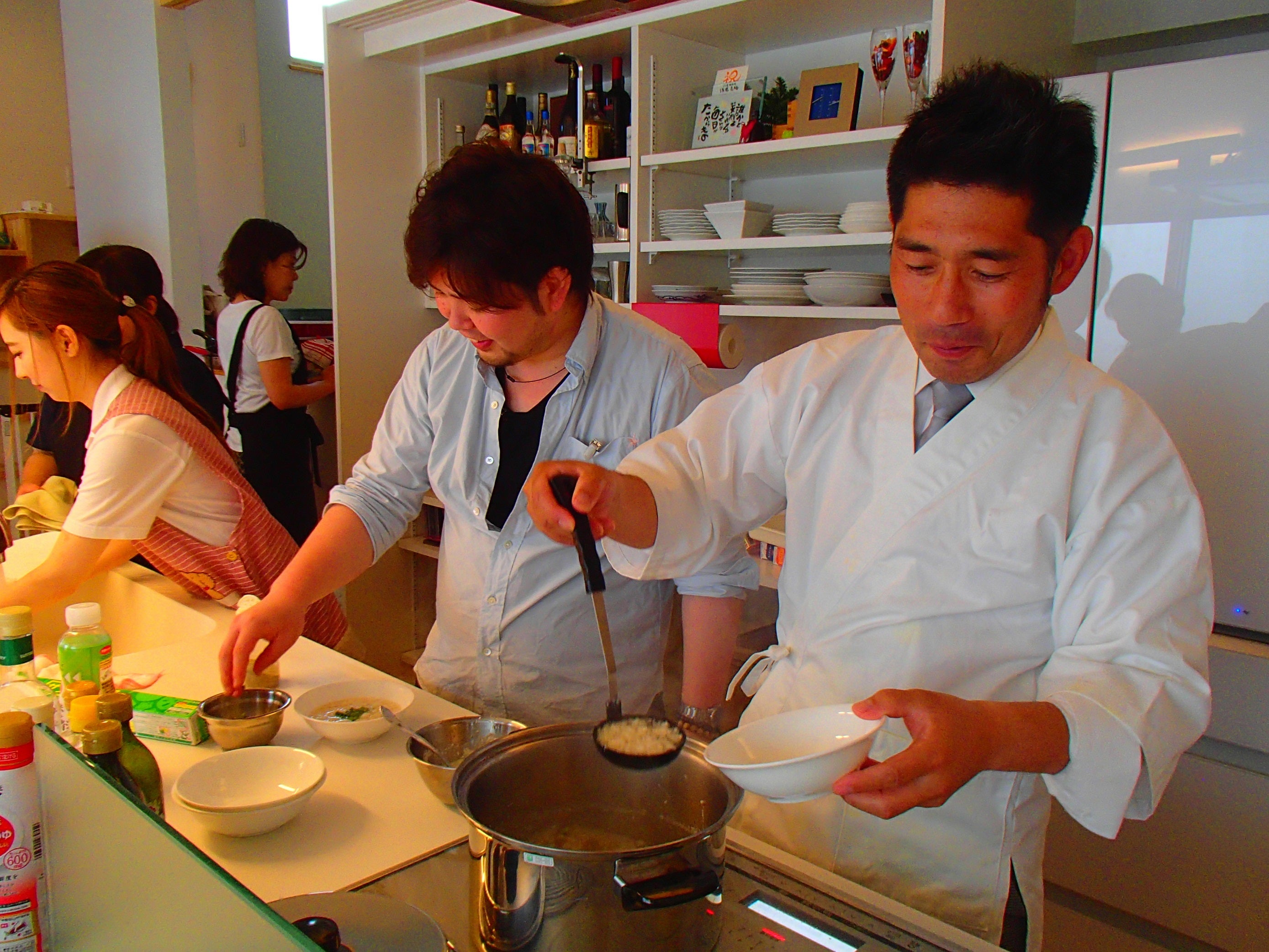 こちらでは 鶏おぼろスープの準備をしてもらってます![]()