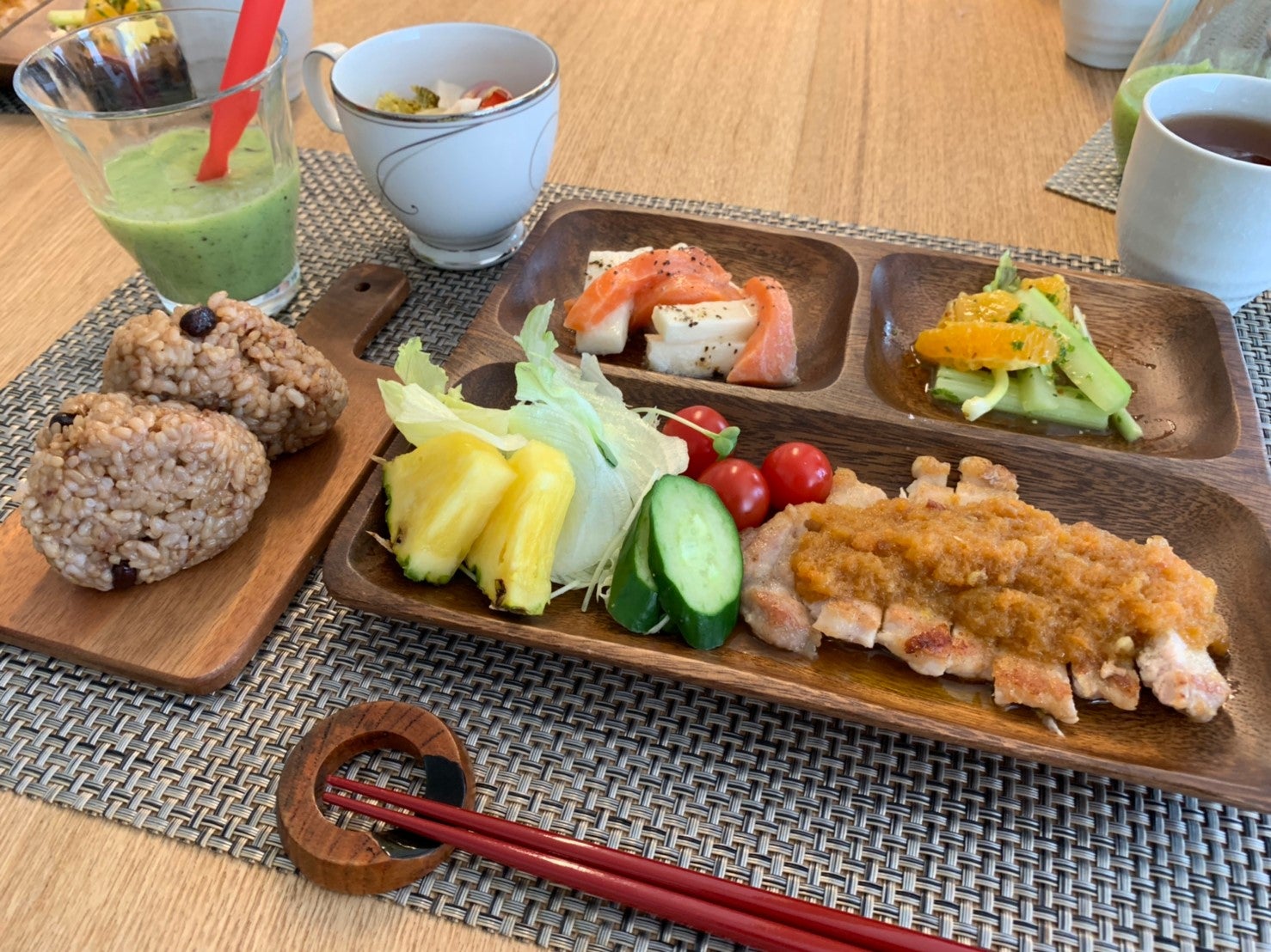 今回は かわいらしいウッドプレートを使って盛り付け![]()