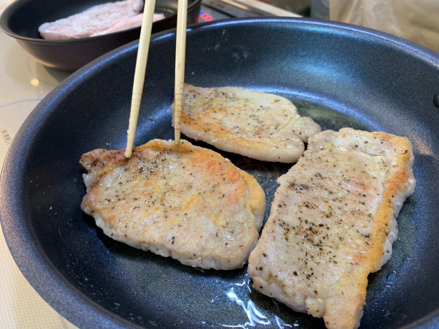 豚ロース肉は 塩・コショウして