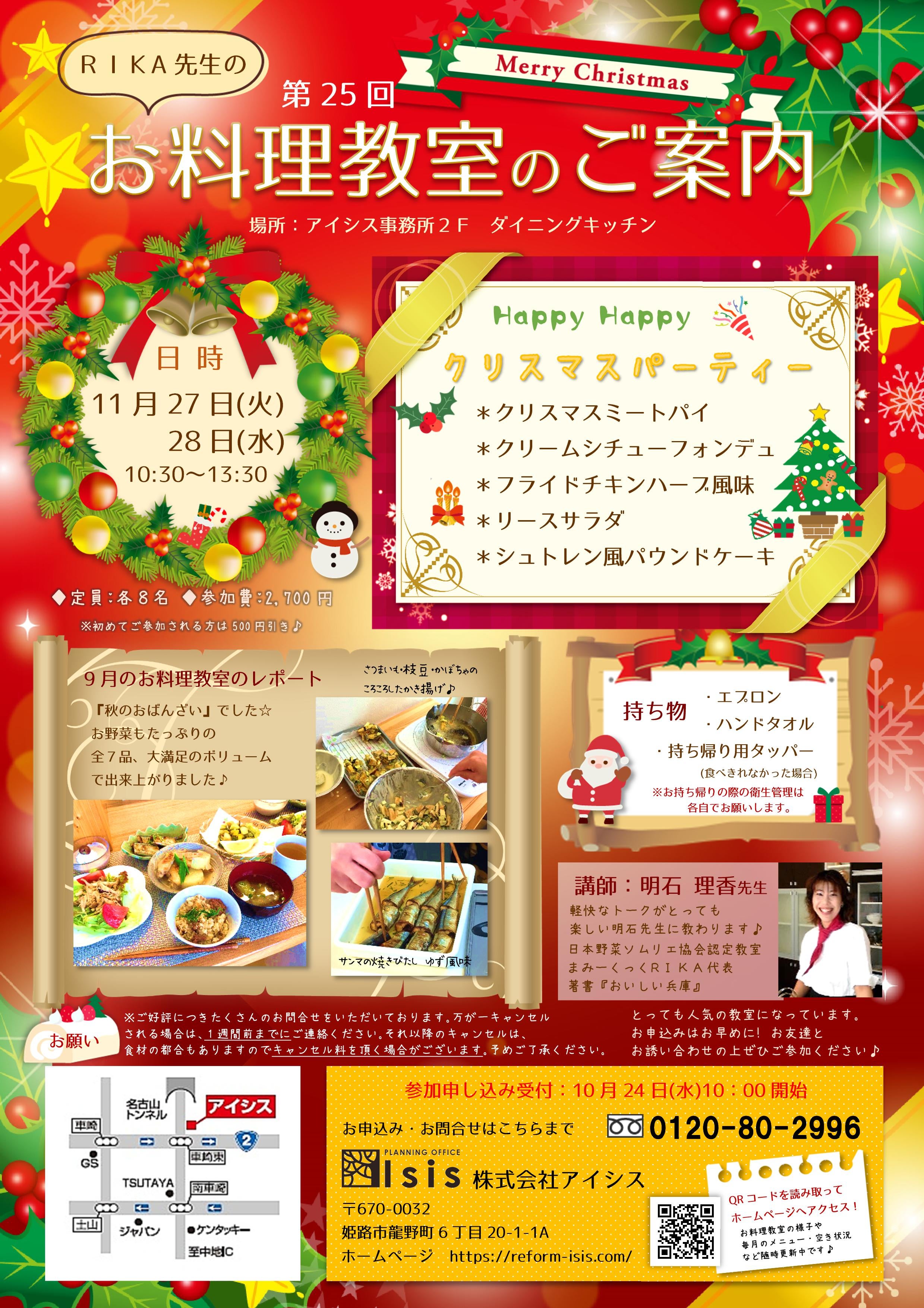 11月27日(火)・28日(水)のお料理教室のご案内です![]()