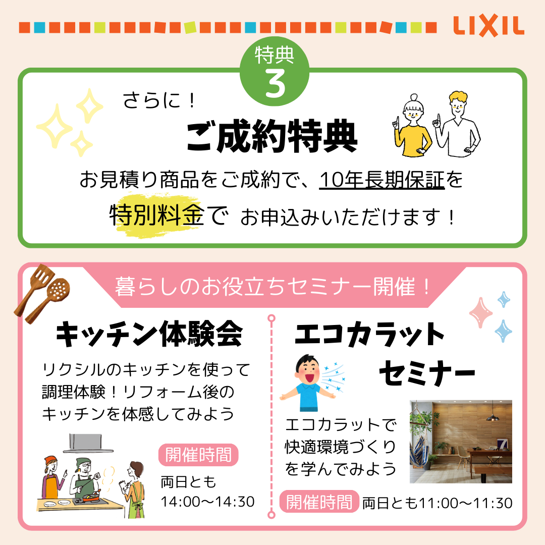 そのほか、長期保証を特別料金で申込できるご成約特典や