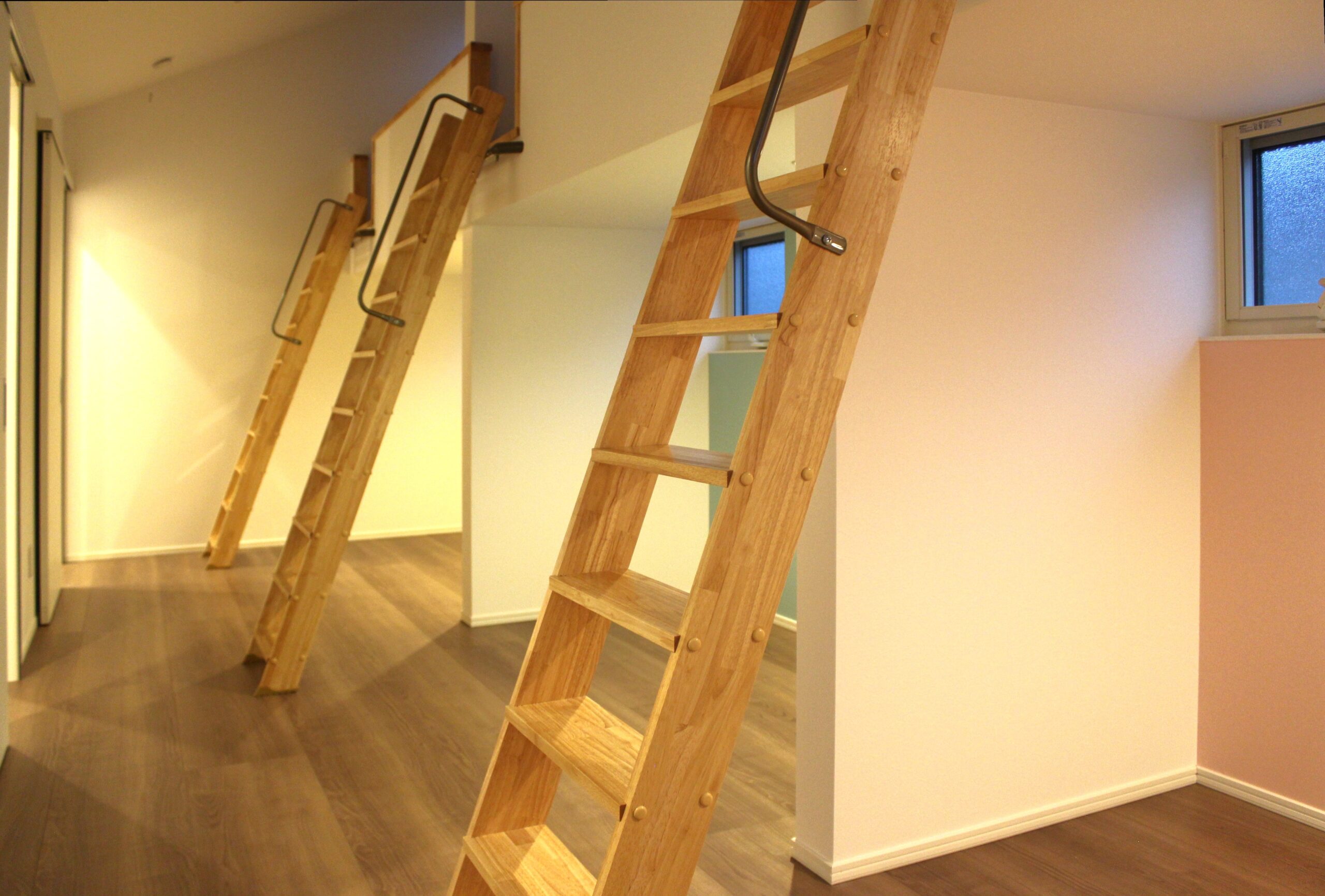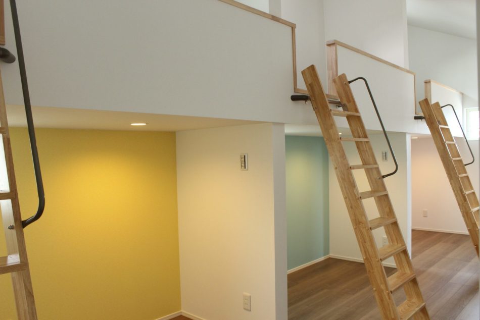 子供部屋はロフト部分がベッドになるようにし、一人ずつ壁の色も変えて、見た目も楽しい空間に。将来間仕切り壁を作って部屋を分けられるように、各スペースにあらかじめコンセントやスイッチ、窓も設置。子供さんの成長がとても楽しみですね。
