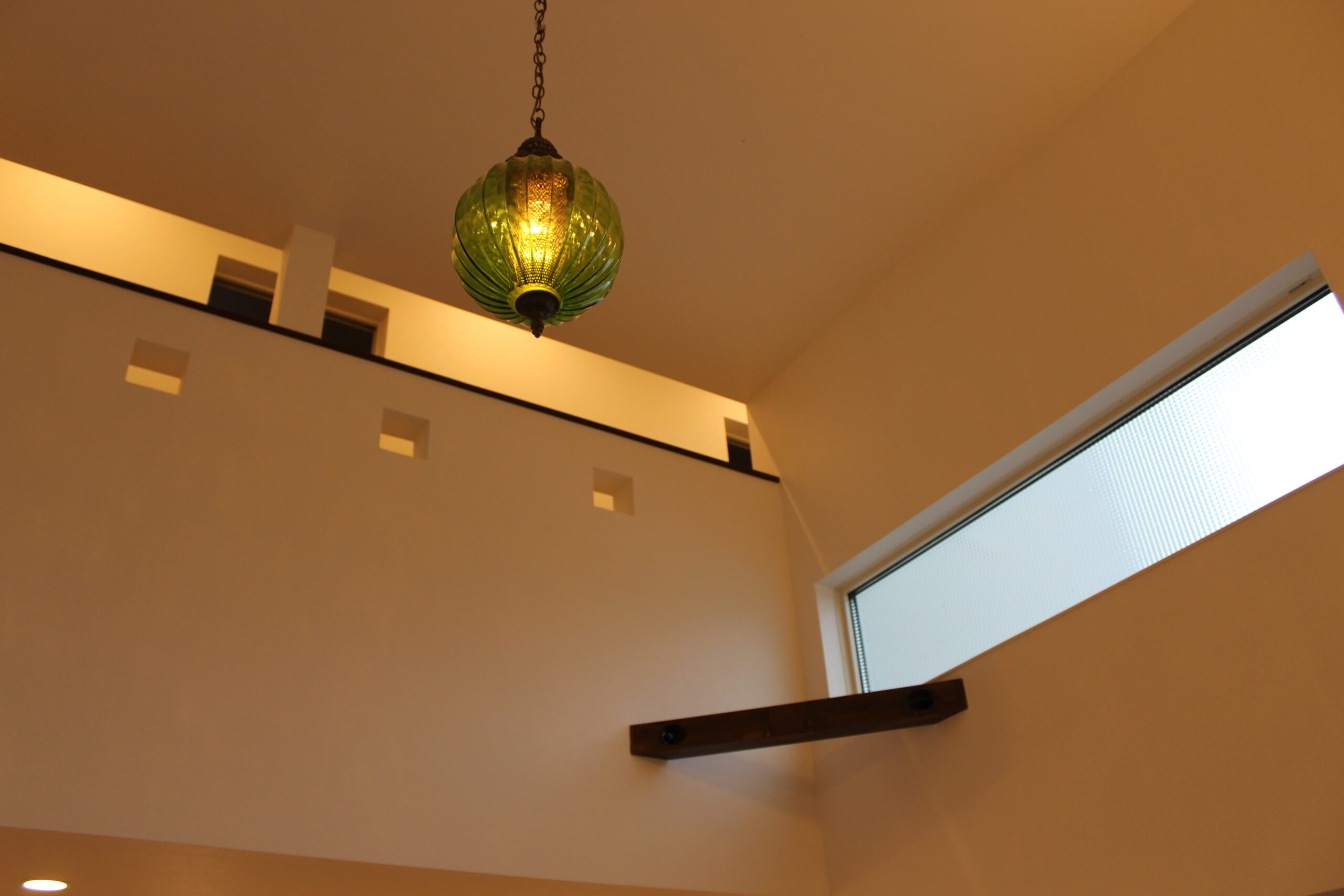 リビングに吹き抜けスペースを設けましたが、天井の高さを2階の途中までの高さにすることで、解放感はありながら、空調の効きはいい効率のいい空間となっています。