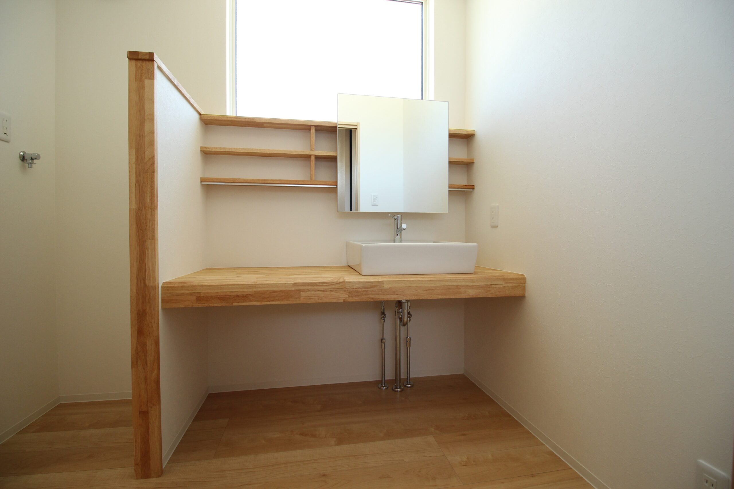 - 洗面台はメーカーさんのシステムタイプではなく、造作したものがいい。