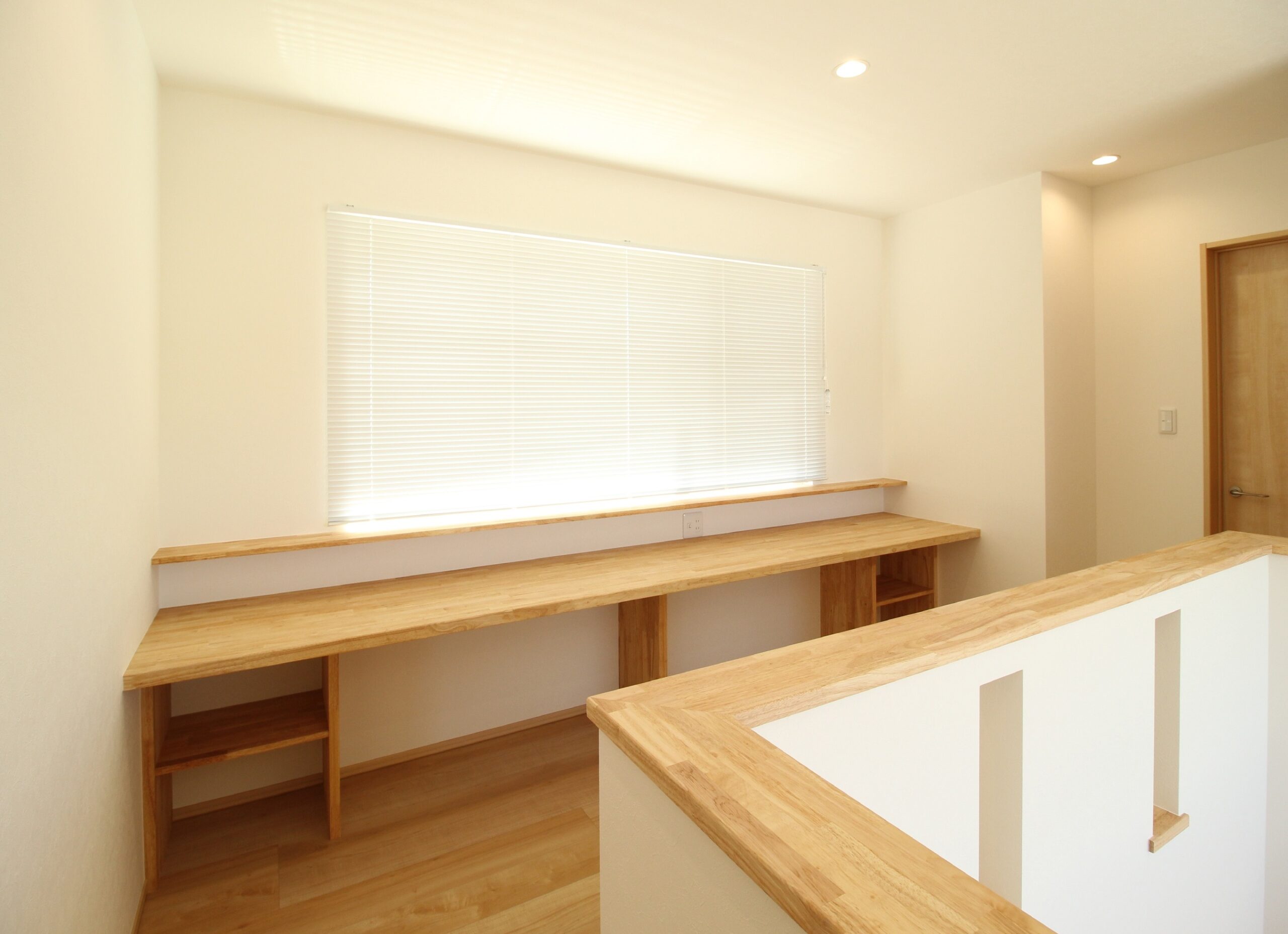 2階の廊下のスペースには家族みんなで使えるワークスペースを設置しました。