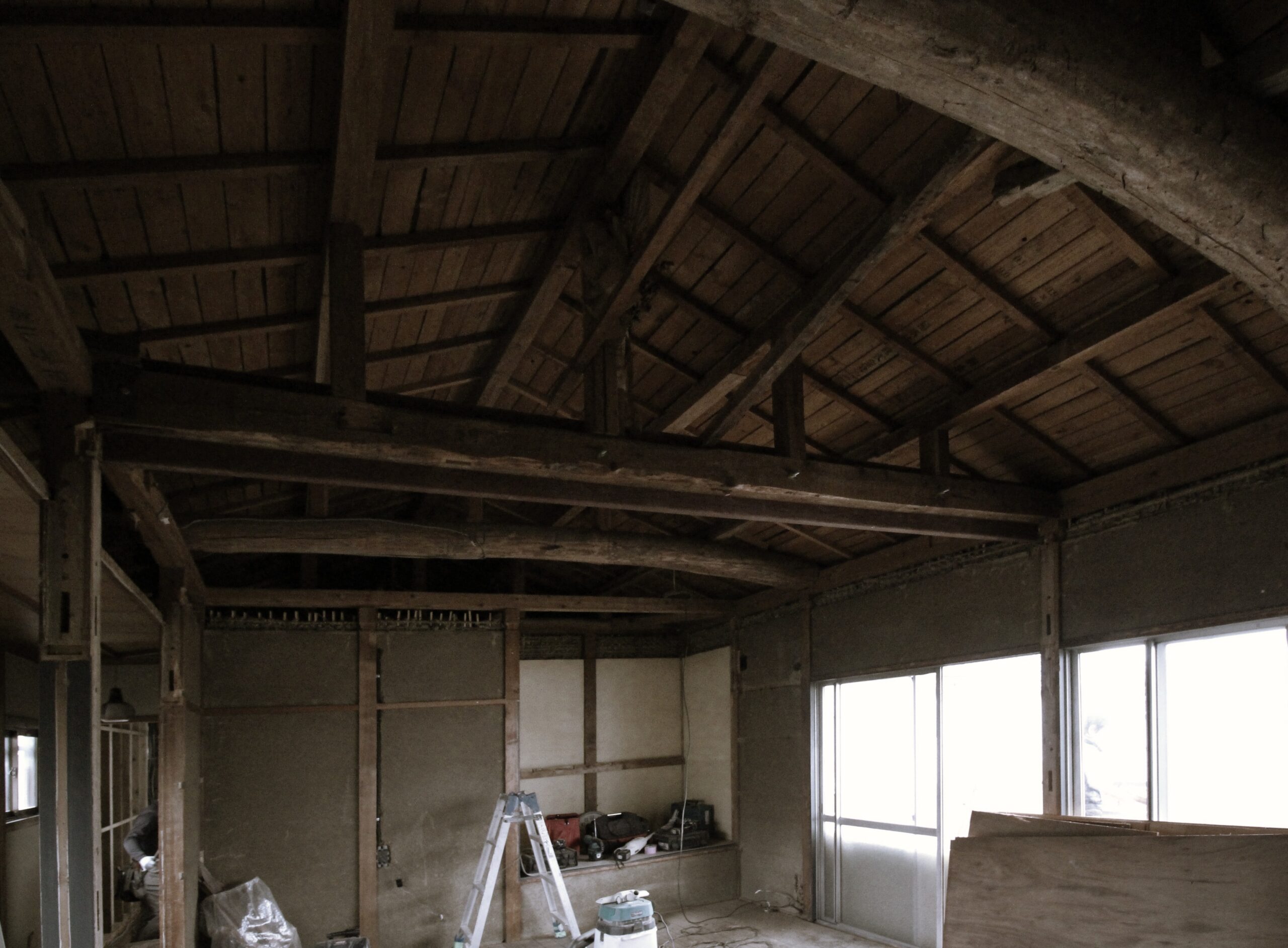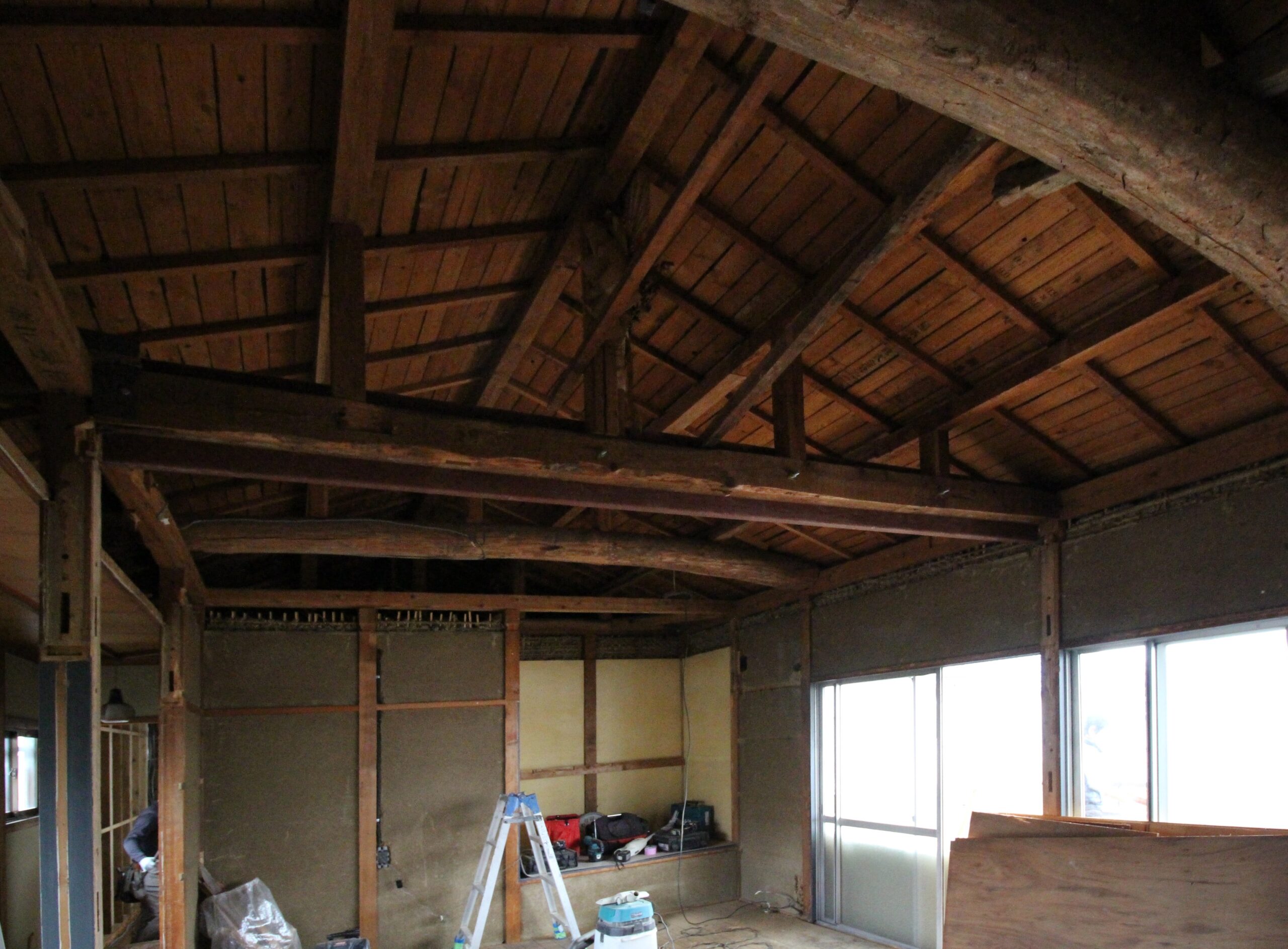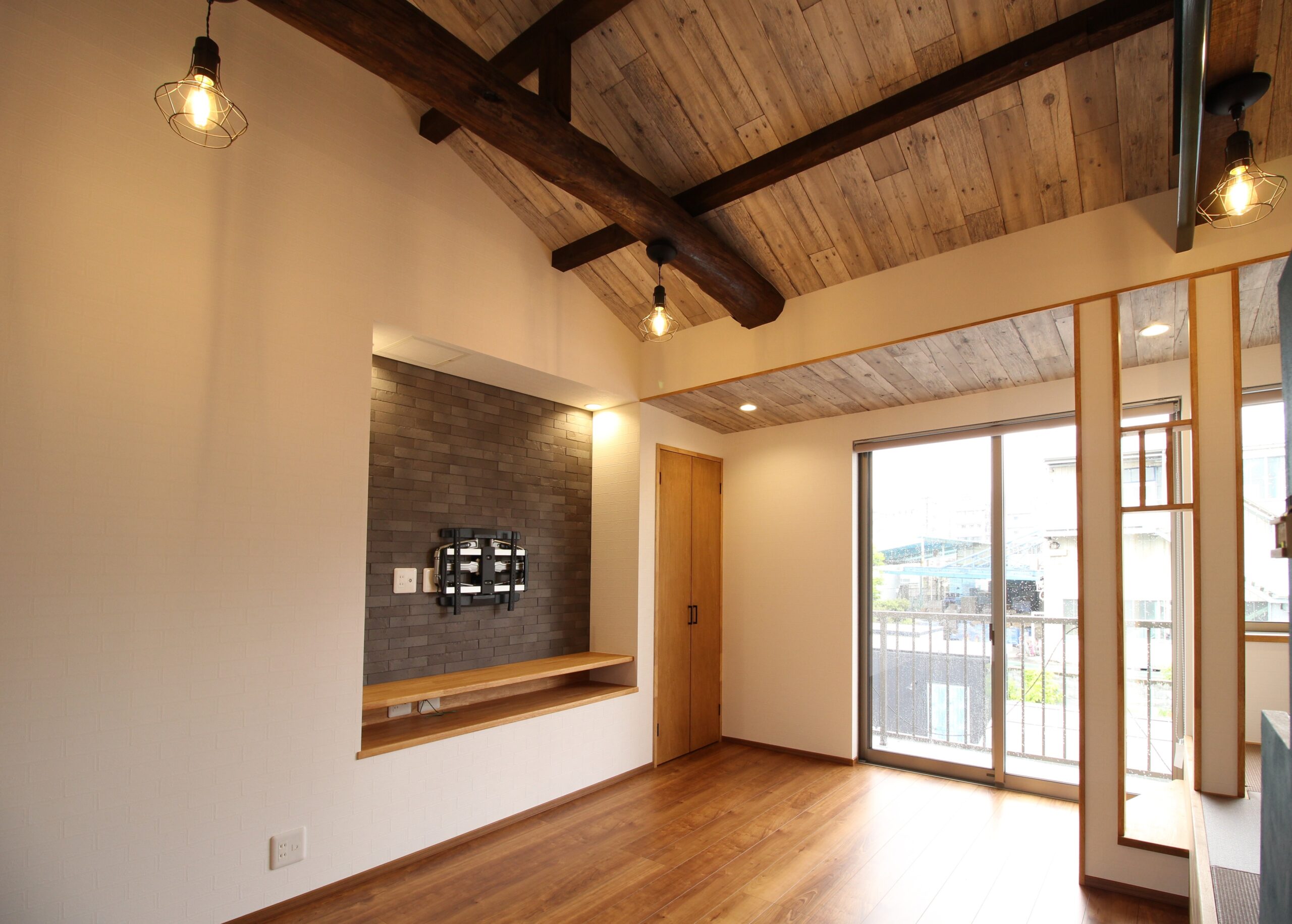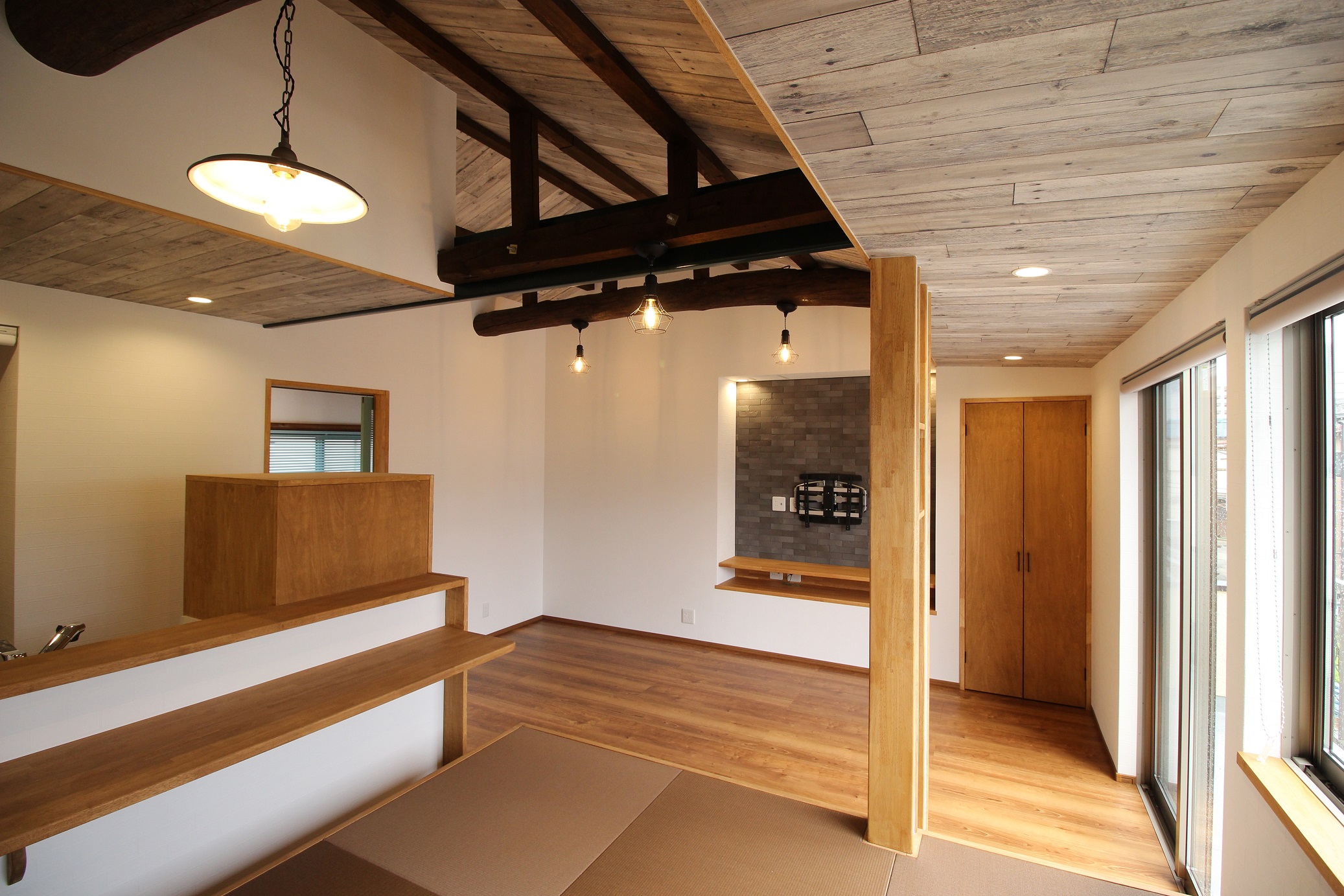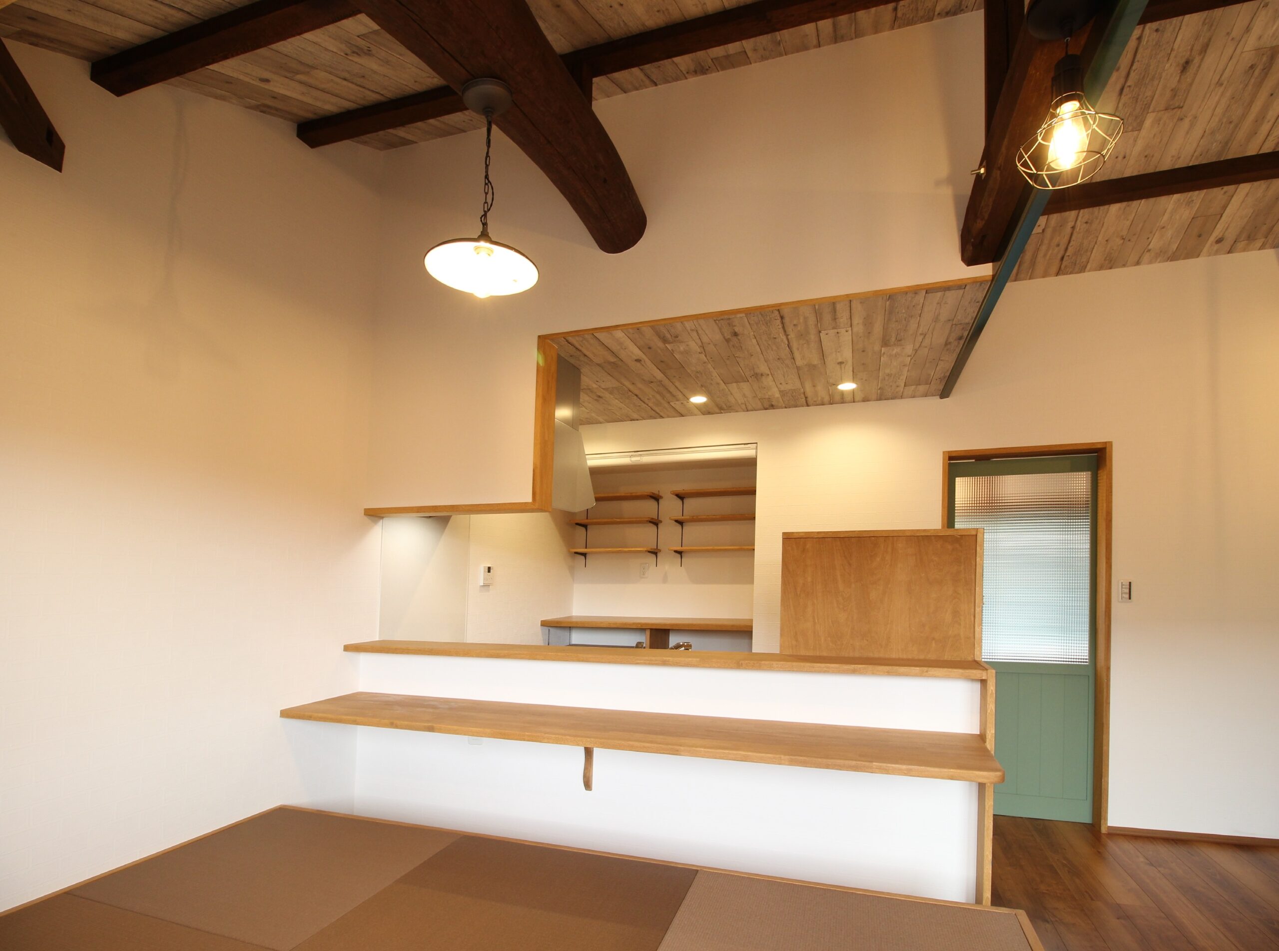 解体した際に立派な梁がでてきたので、その梁を活かし天井を高くしたので、小上がりスペースに上がっても圧迫感もなくとても快適な空間となりました。