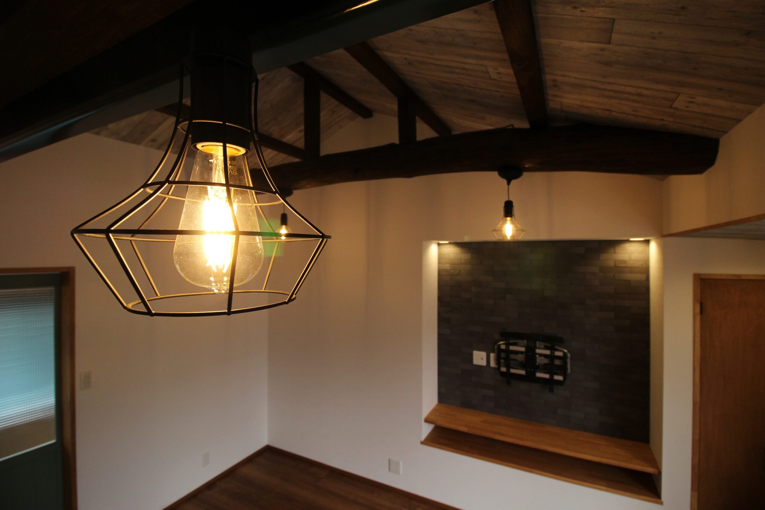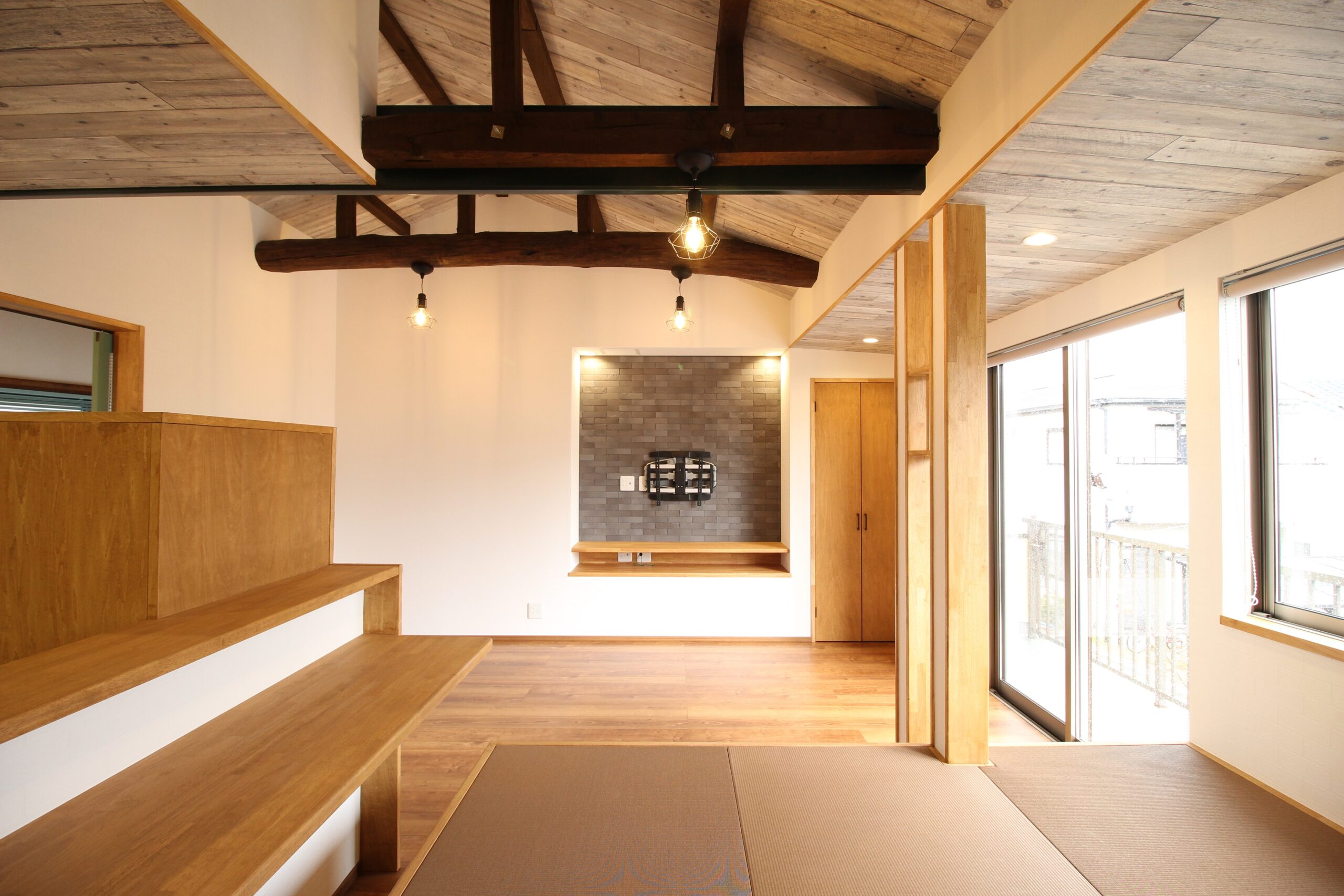 家事動線もよくとても気に入っています。特に畳のスペースに寝転がって立派な梁やお気に入りの照明を見上げていると、とても幸せな気分になります。