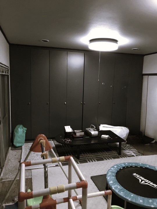 また、ベランダが広かったので、少し増築して屋内のスペースを確保し、広がったスペースに収納棚を設置。