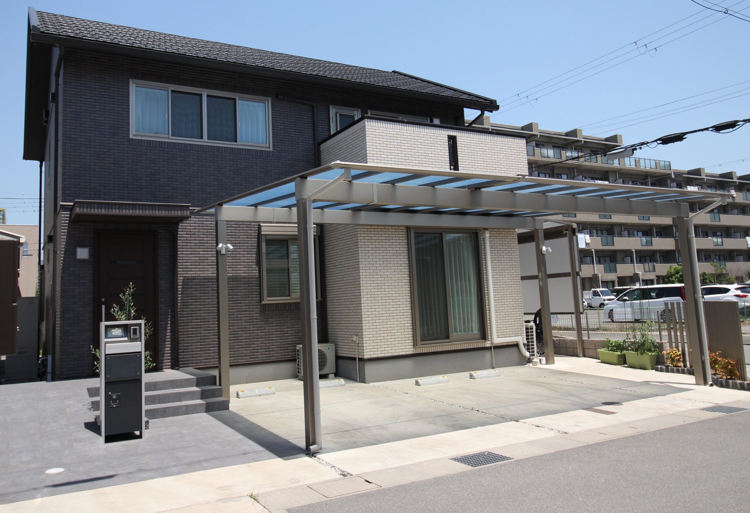 - 車から濡れずに家に入るためにカーポートはつけたいが、すっきりとしたデザインにしたい。