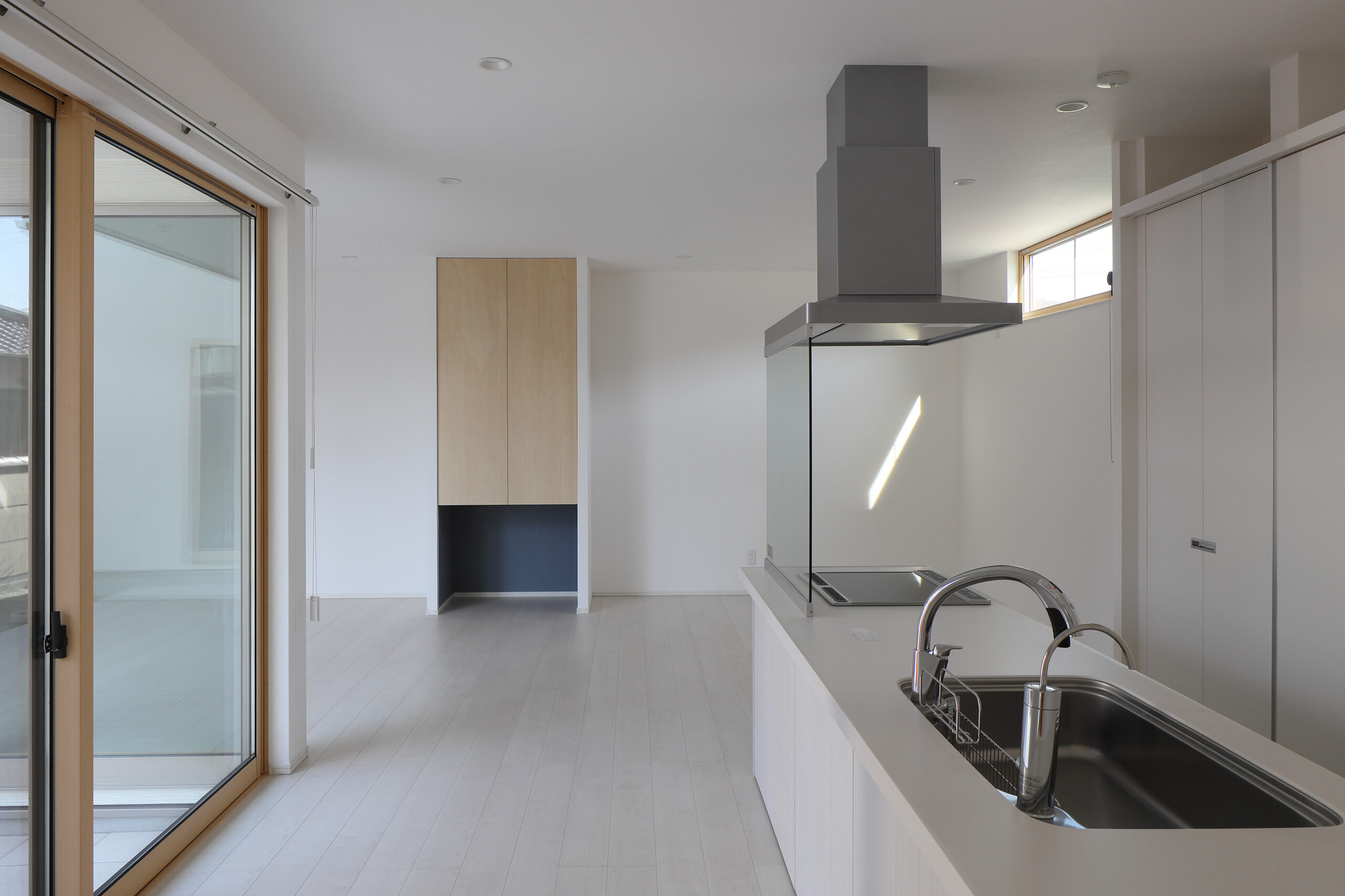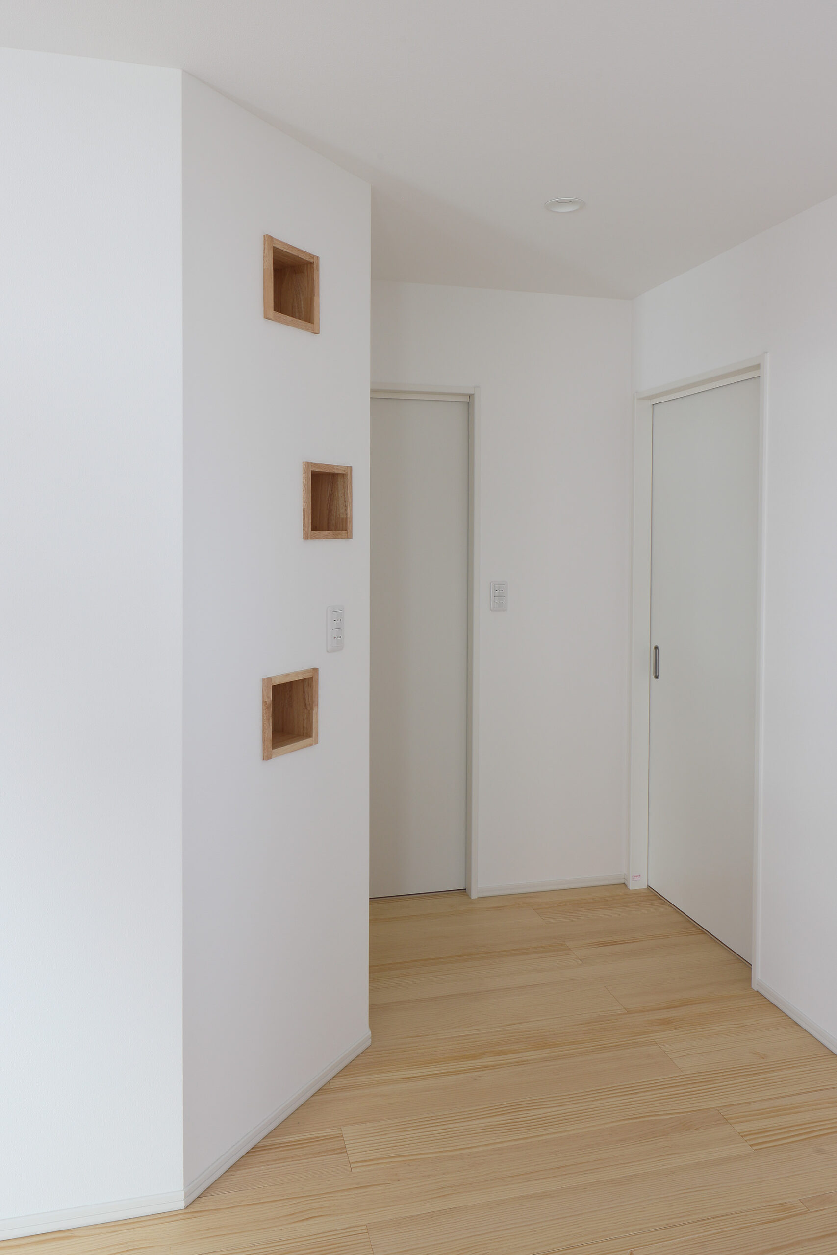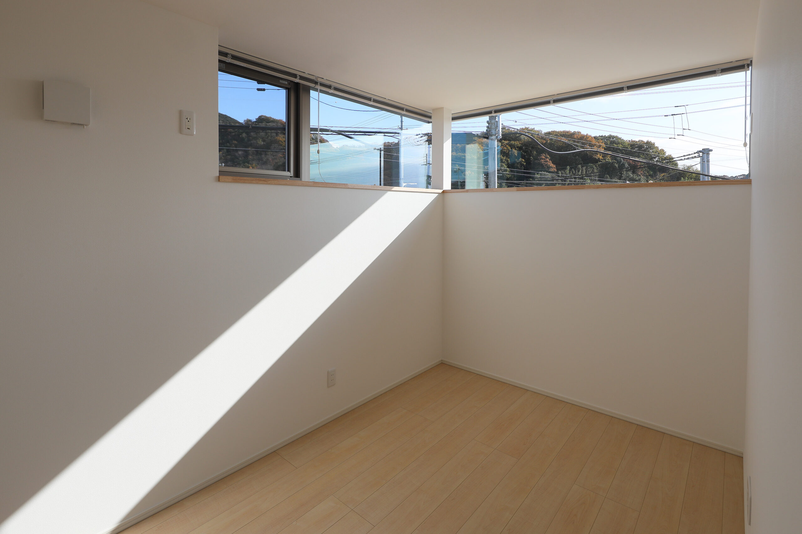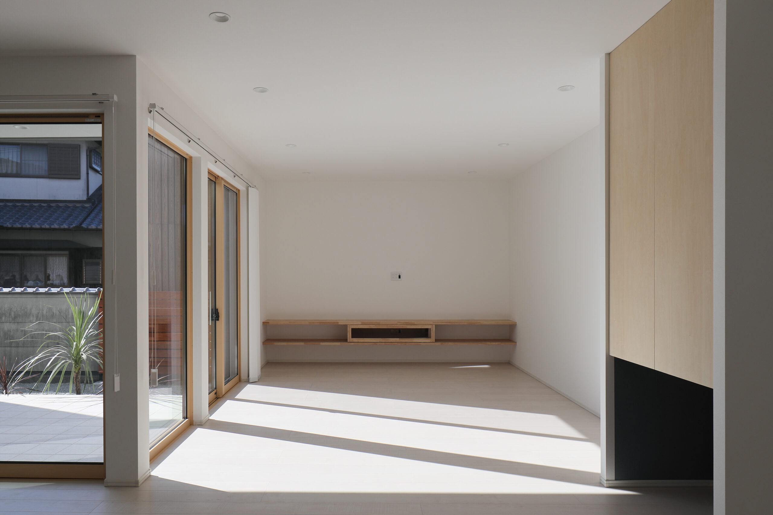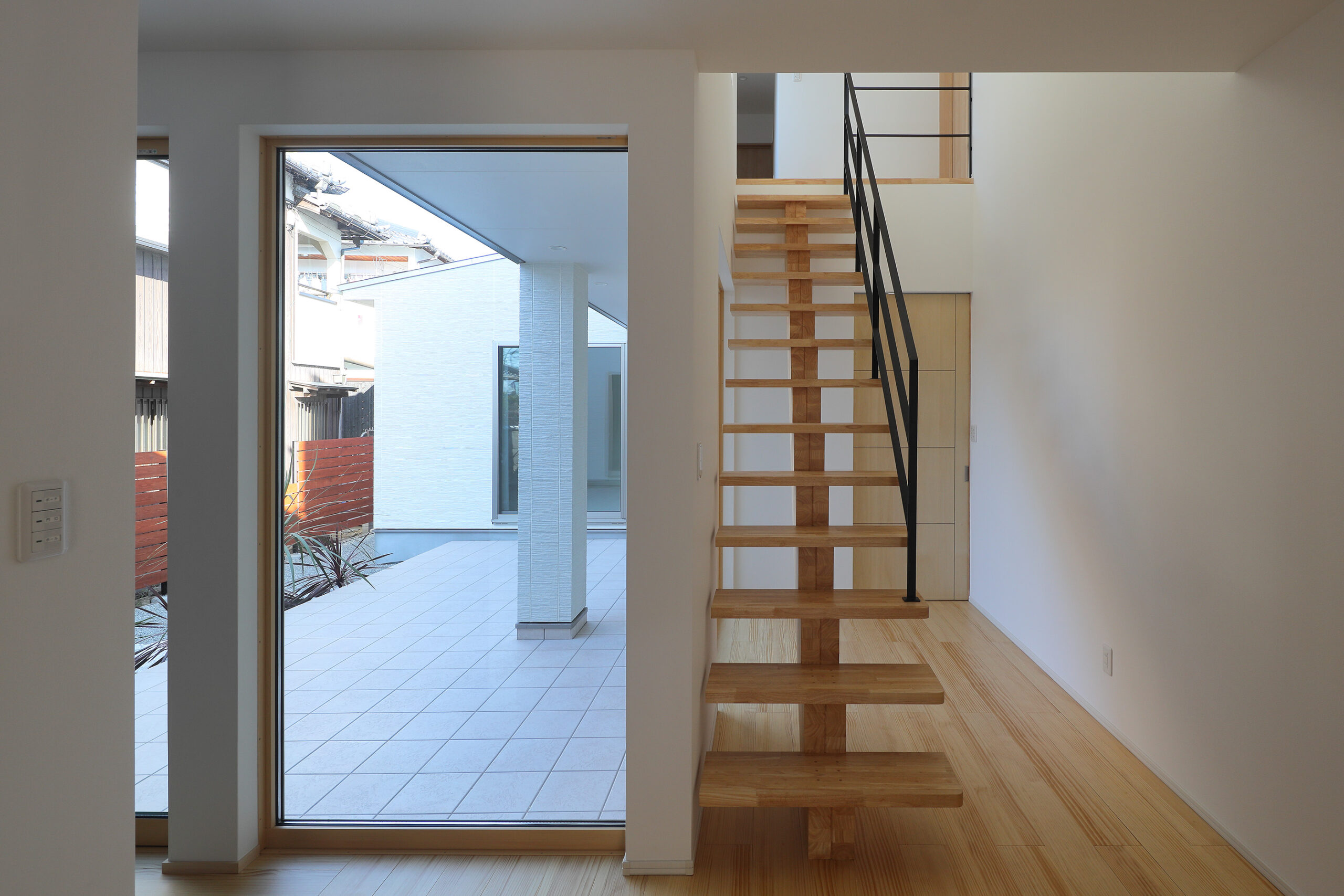 車通りの多い道路側には 大きな窓は設けず、プライバシーを守って騒音も最小限にシャットアウトするようにしました。