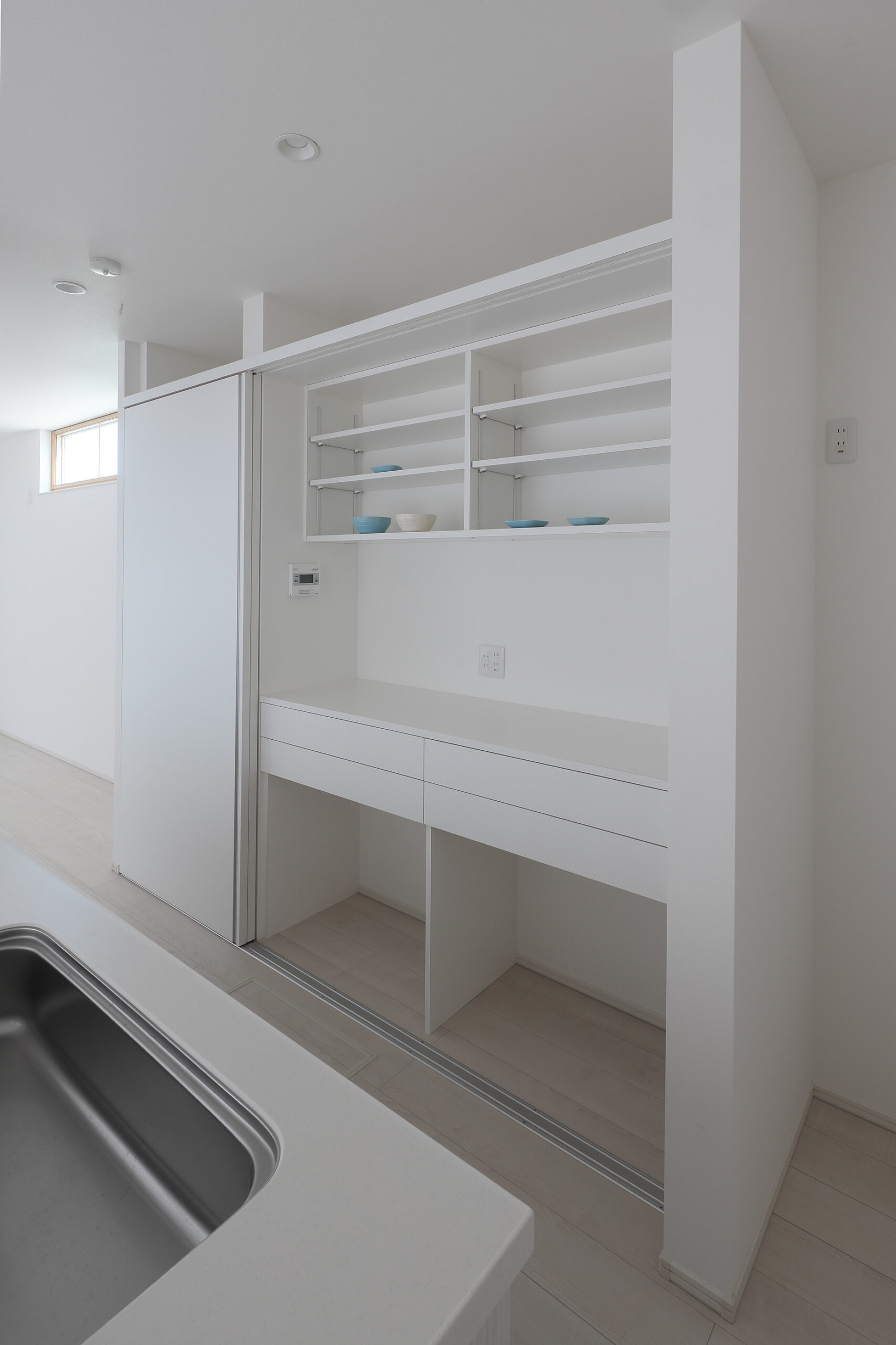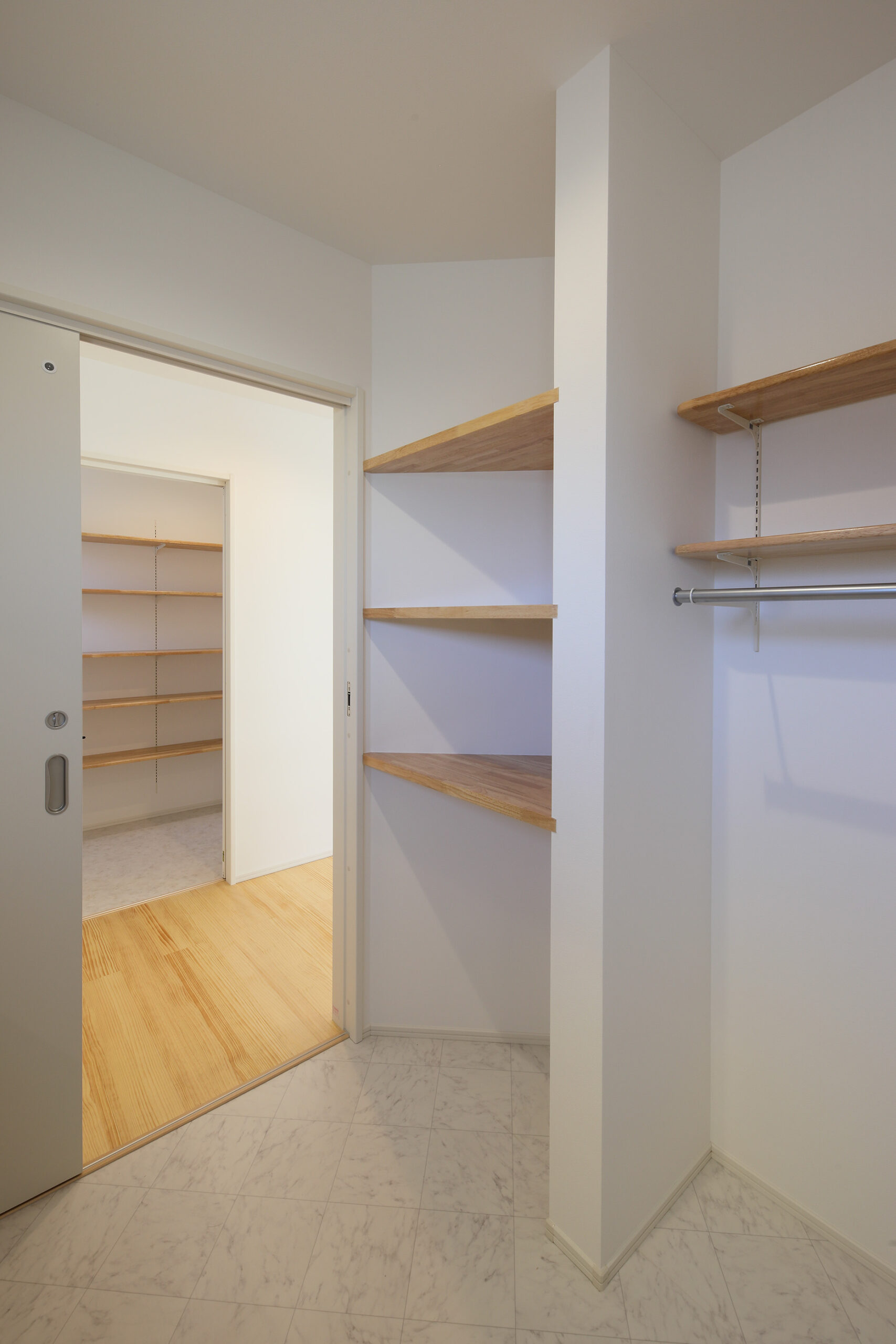 ご希望に沿って収納をたくさん設け、来客時にもすっきり見せられるよう生活感を隠せる収納にしました。