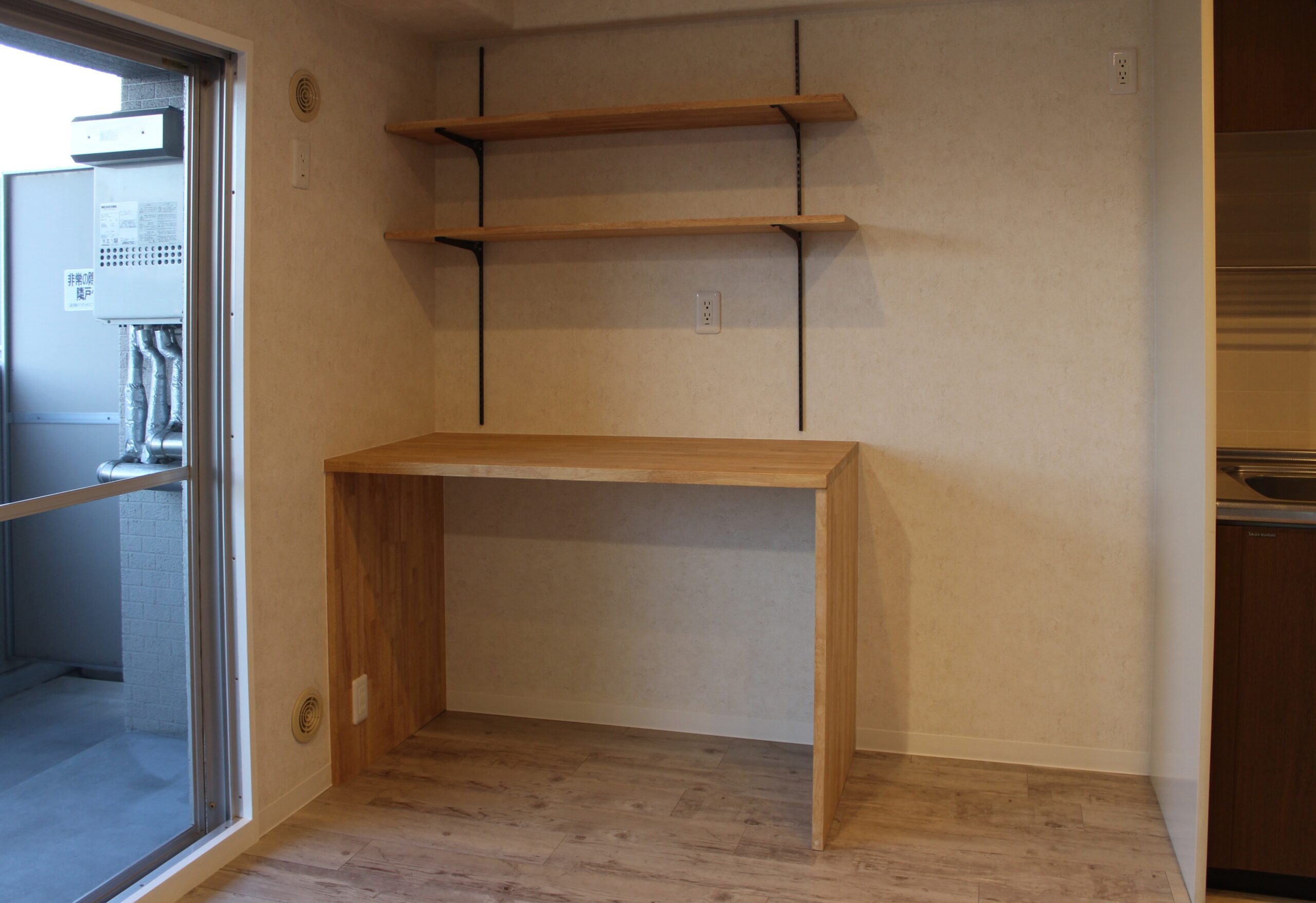 築30年ほどのマンションで、二間続きの和室があったところを解体してリビングダイニングを広く取り、さらにロフトをつくりました。ロフト下はたっぷりの収納を備えました。