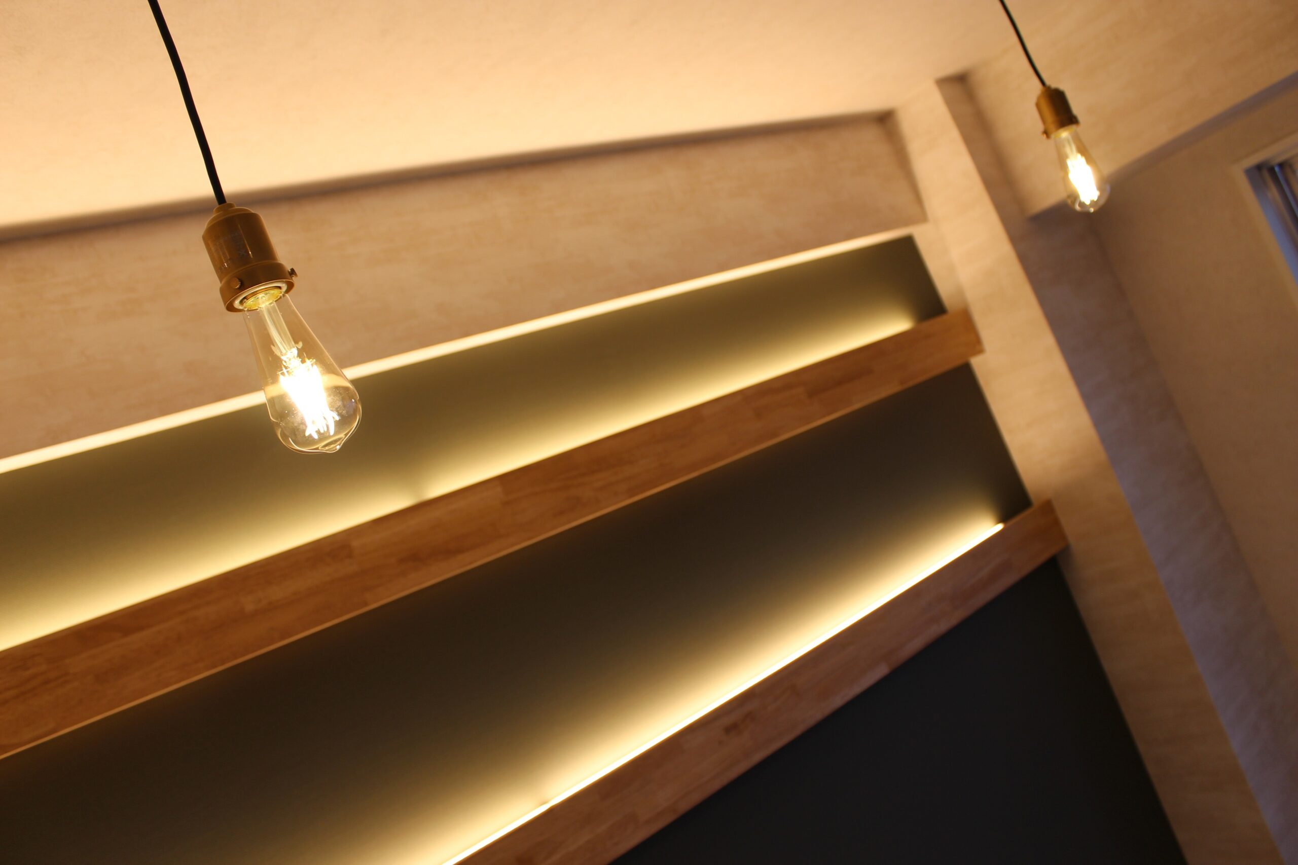 照明は 明るさを調整できる調光タイプのものを選び、気分によって部屋の雰囲気を変えられるものにしています。