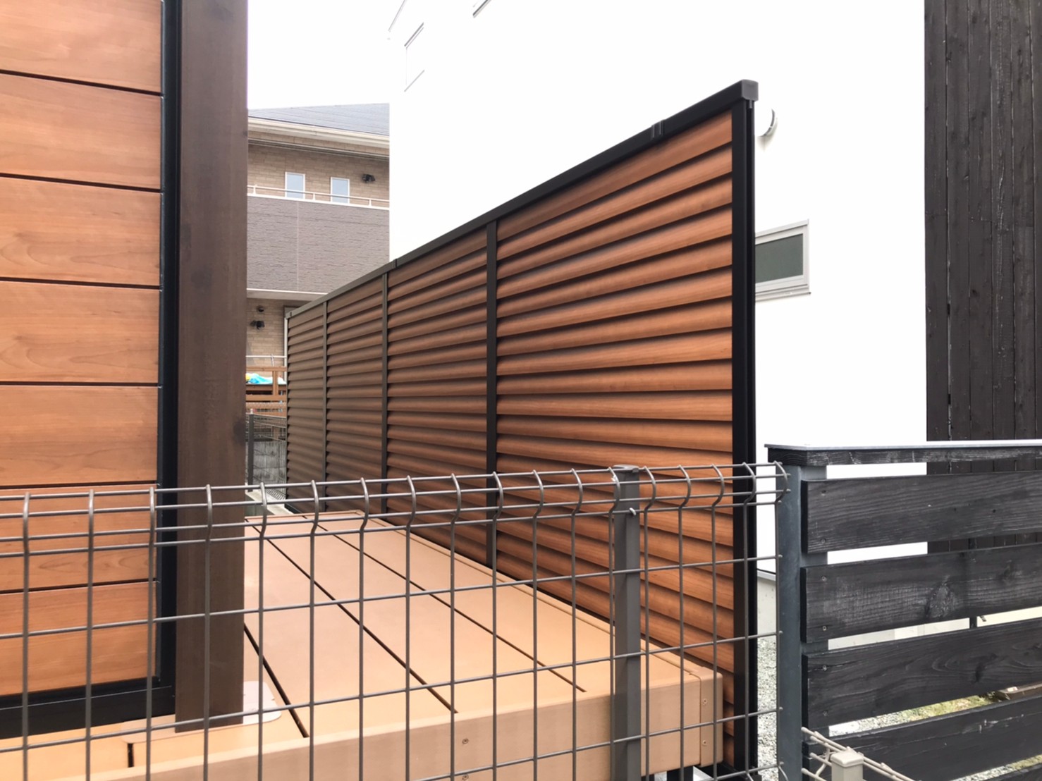 お隣さんからの視線も気になるということで、ハイタイプの腰壁・内側にロールスクリーン・敷地境界にフェンスを立てるなどして、プライバシーも確保しました。