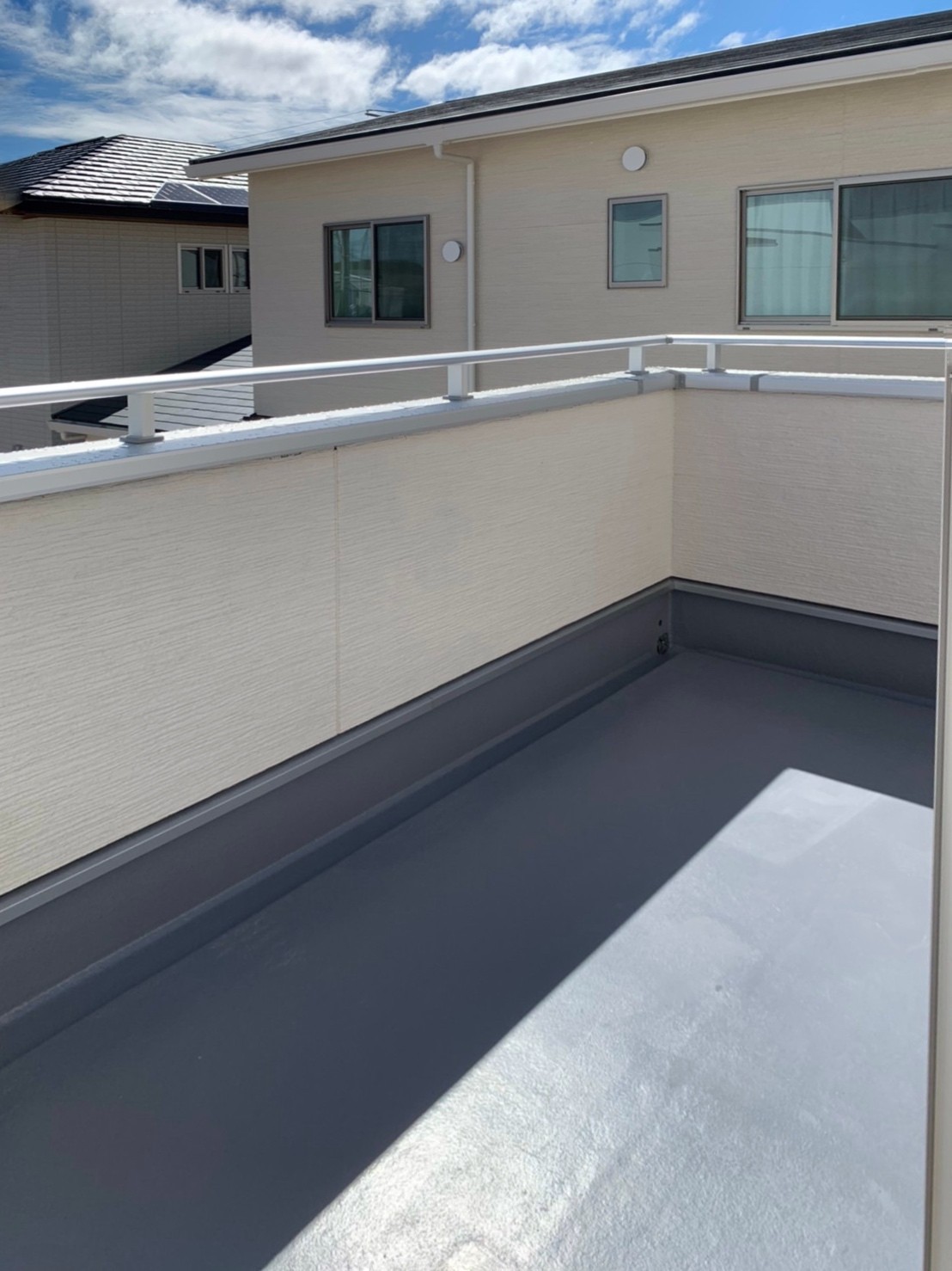リビングから直接出られるバルコニーは L字型で少し広めに取り、気候のいい時期ならテーブルや椅子をセットしてお食事を取ったりベランピングもできるスペースです。