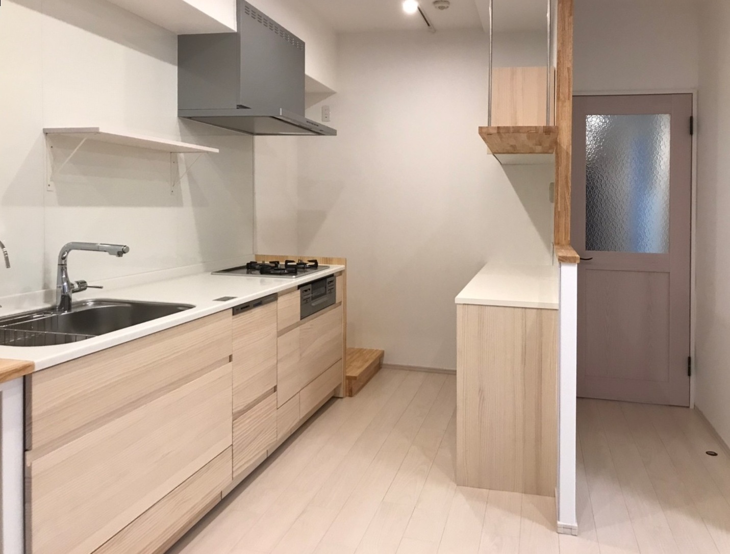 工事前のキッチンは壁で区切られており、どうしても暗い印象になってしまっていました。