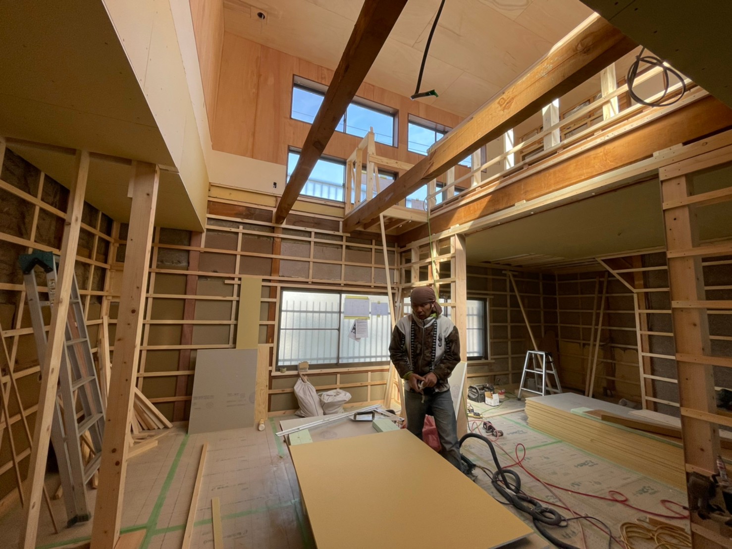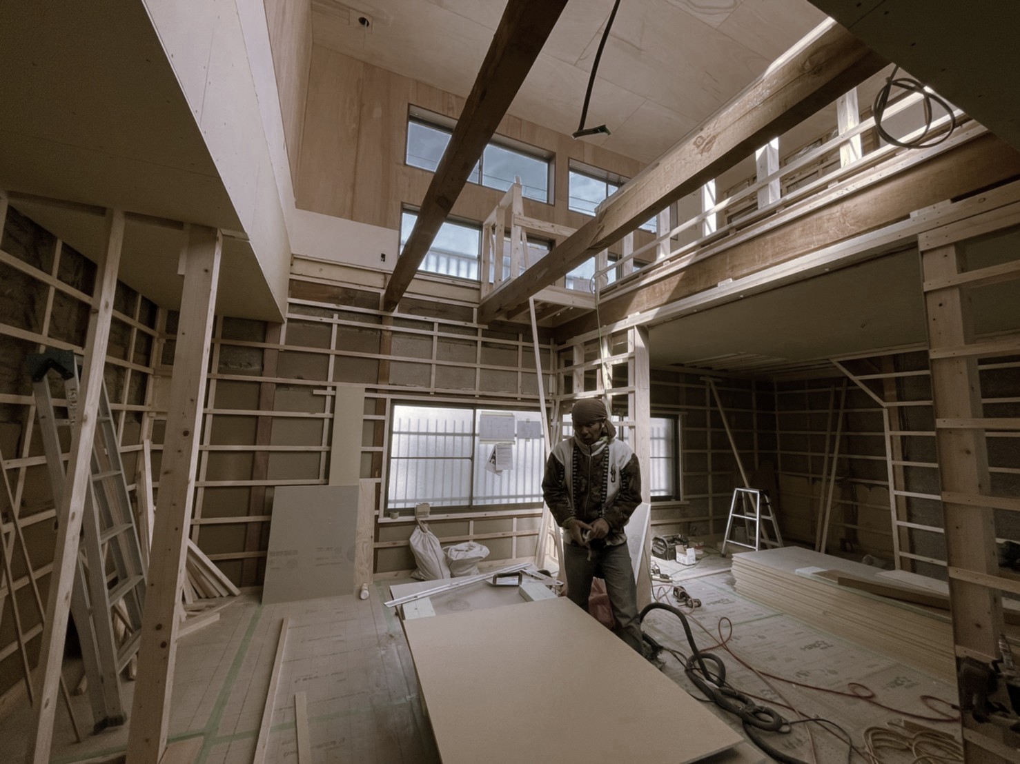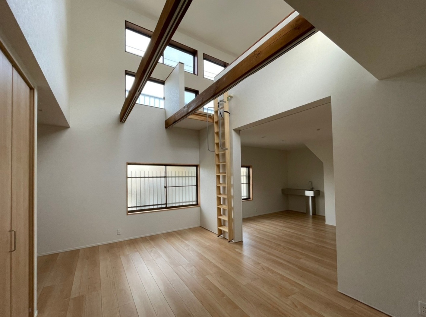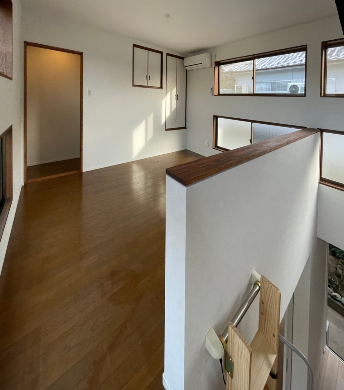 2階の1部屋は吹き抜けにして、階段もしくはハシゴで2階に上がれるメゾネット風の間取りになりました。