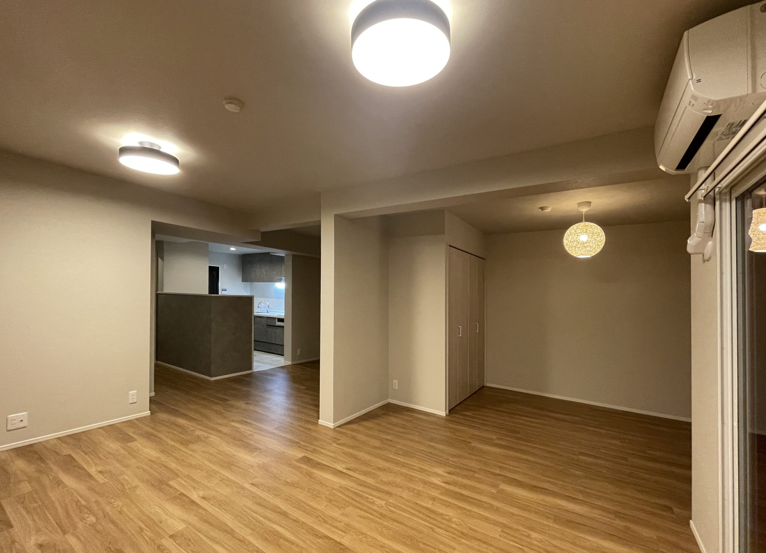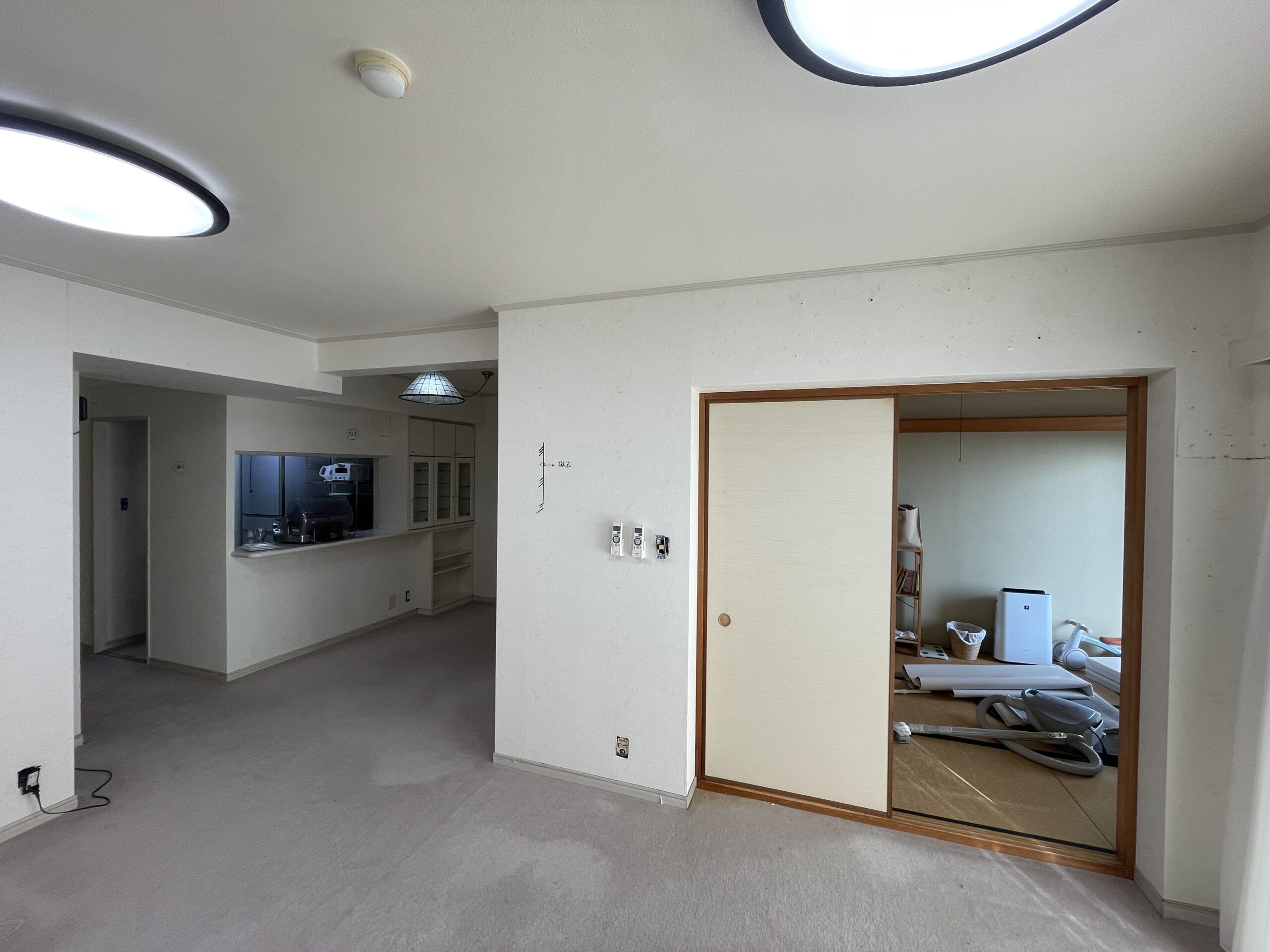 和室とダイニングの間の壁は構造的に取り払うことができなかったので、ある程度可能な間取りは限られてしまいましたが、和室をリビングへ取り込んでひとつながりの広い空間を実現することができました。リビングのバルコニー側の掃き出し窓には先進的窓リノベの補助金を活用して内窓を取付し、断熱性能も高めました。