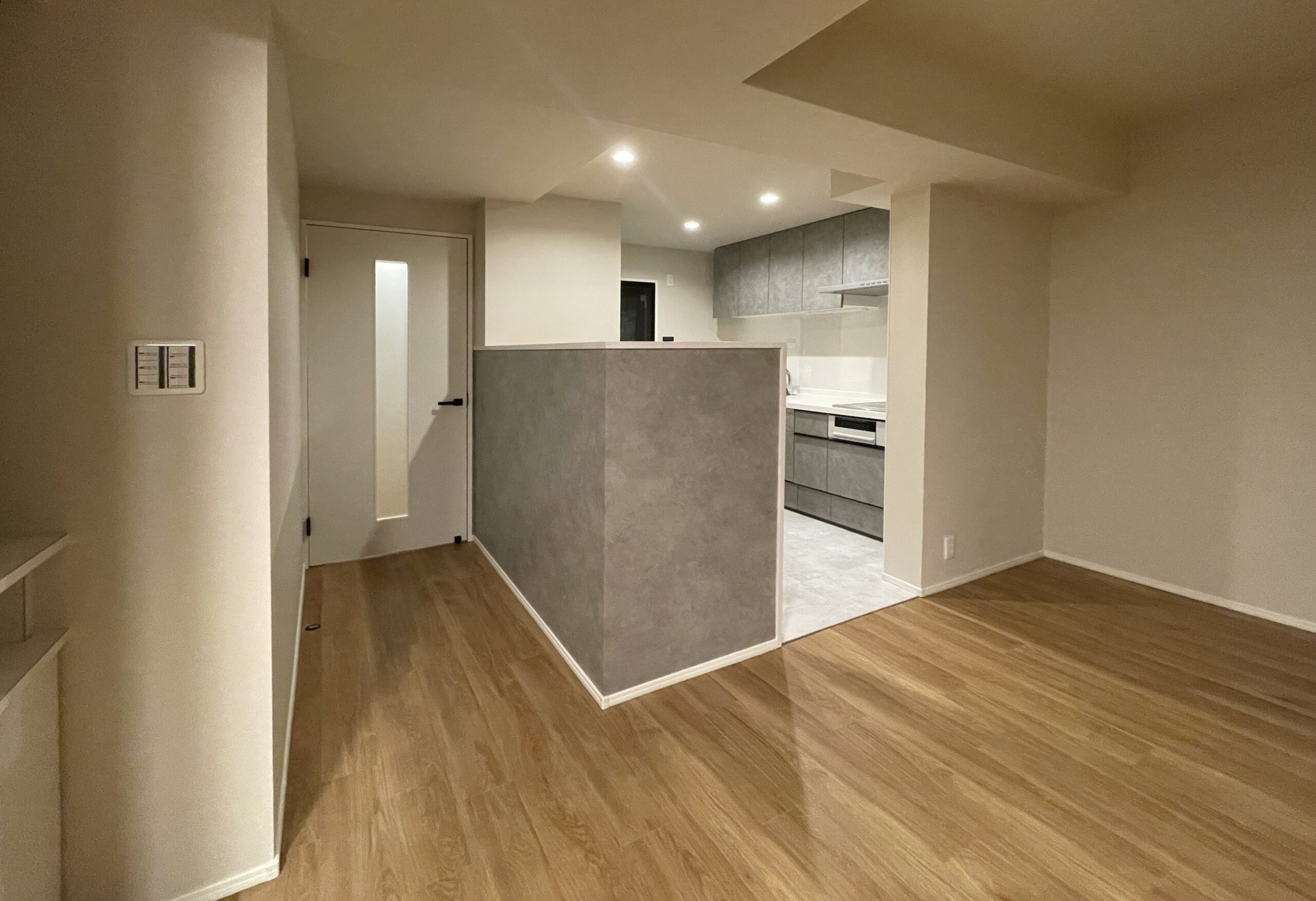 造作家具とグレー系おとな雰囲気のマンションリノベ