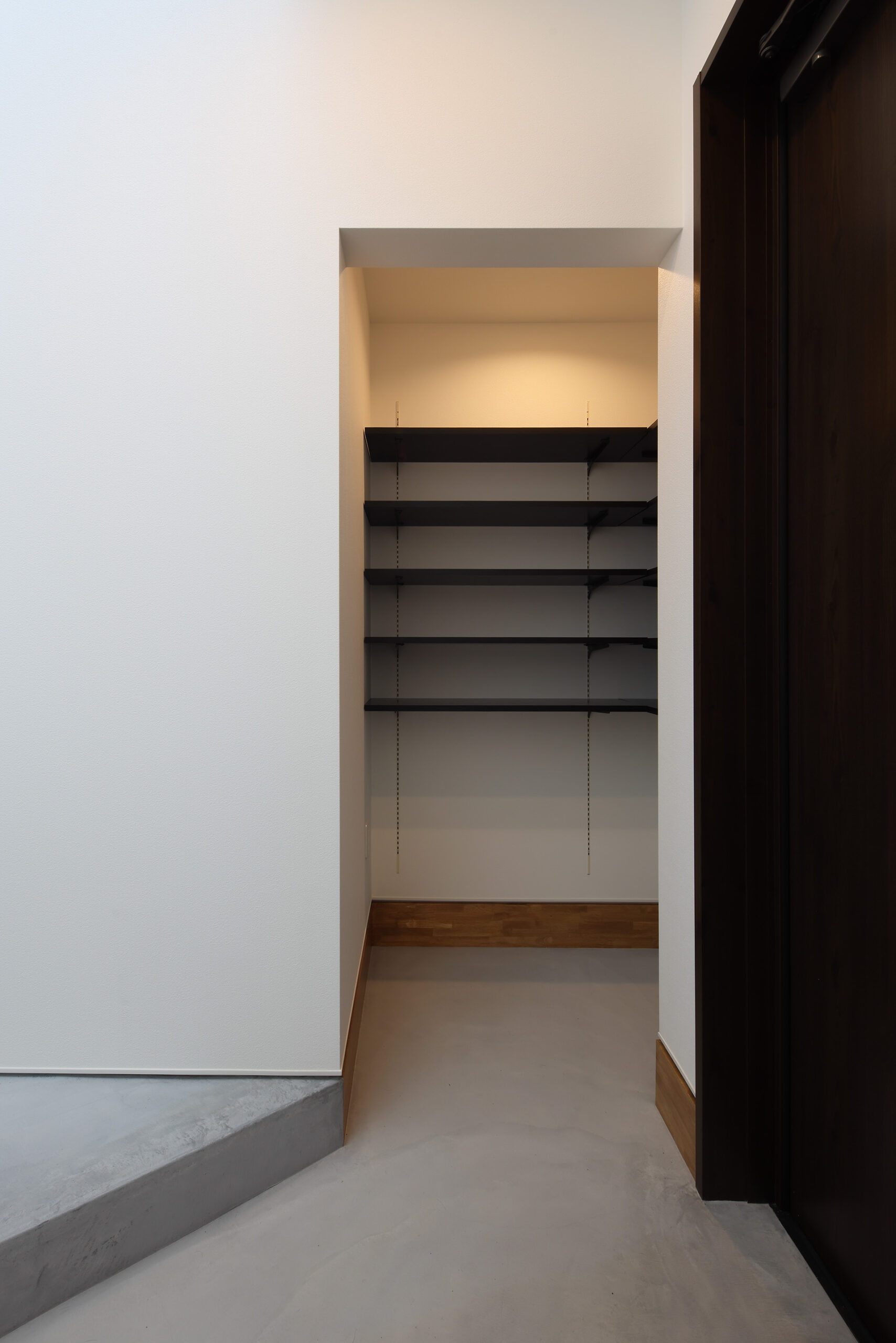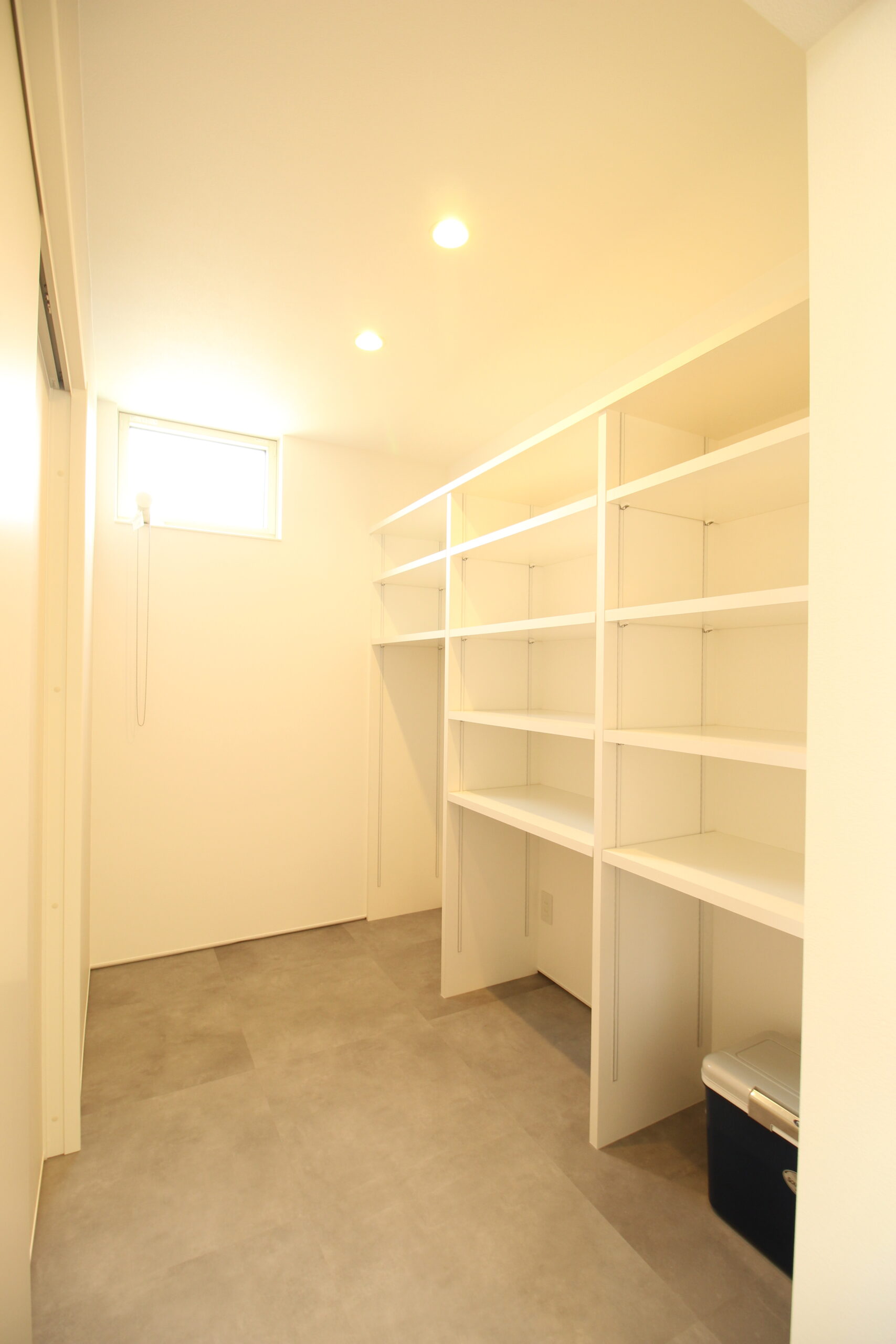 キッチン脇にはなんと3畳分ものひろびろ余裕なパントリー。まとめ買い派の方にも防災用品の備蓄にも心強いです。