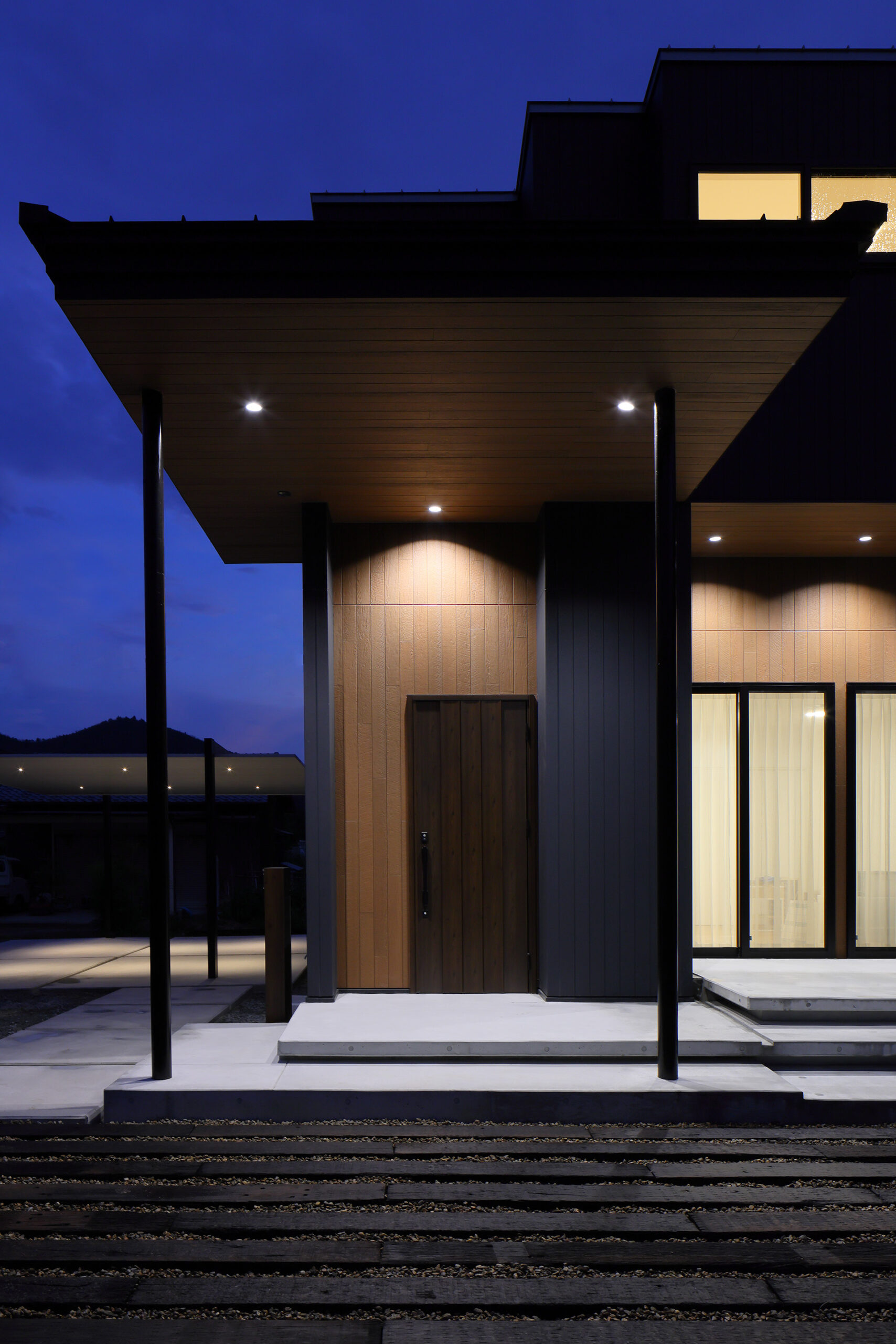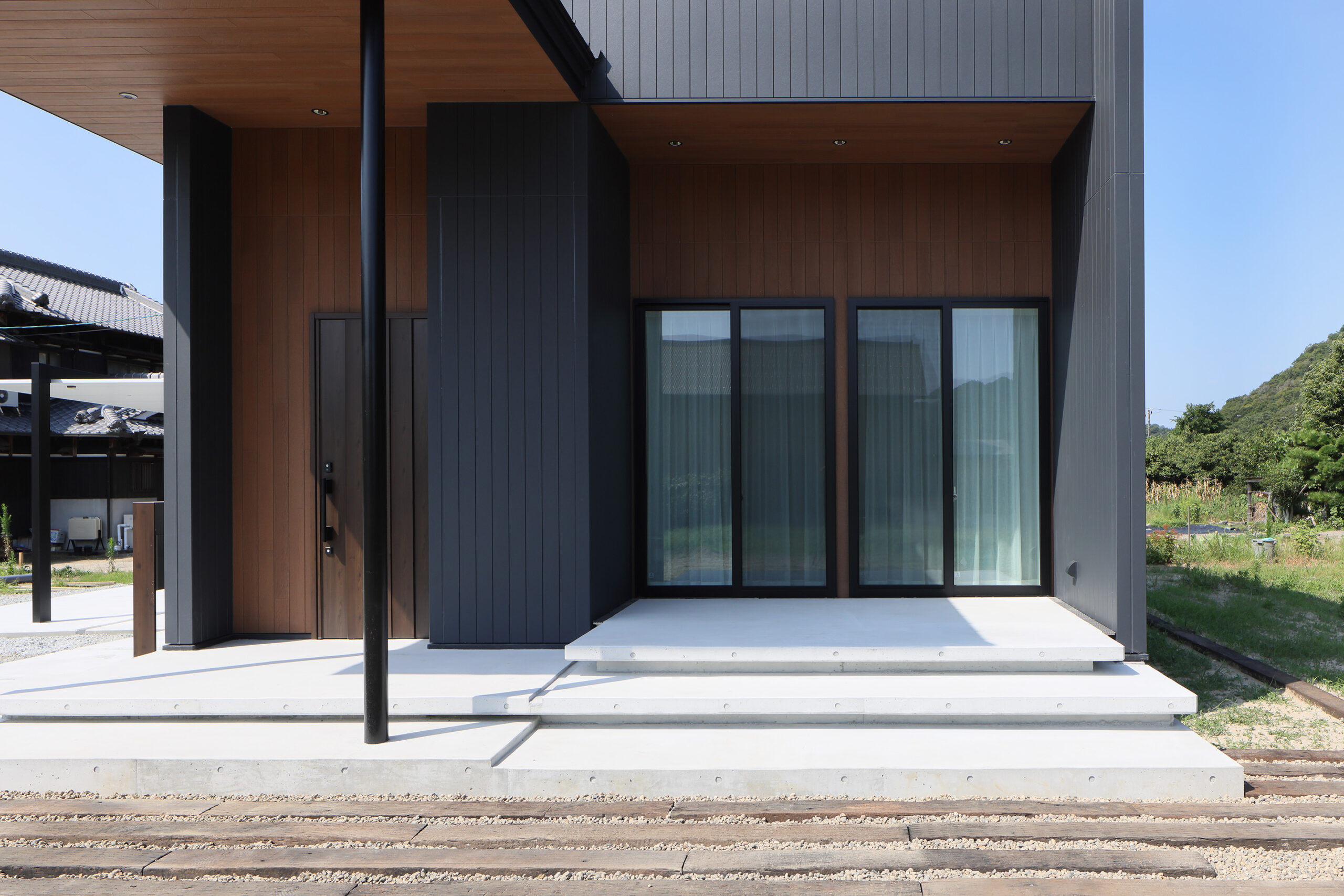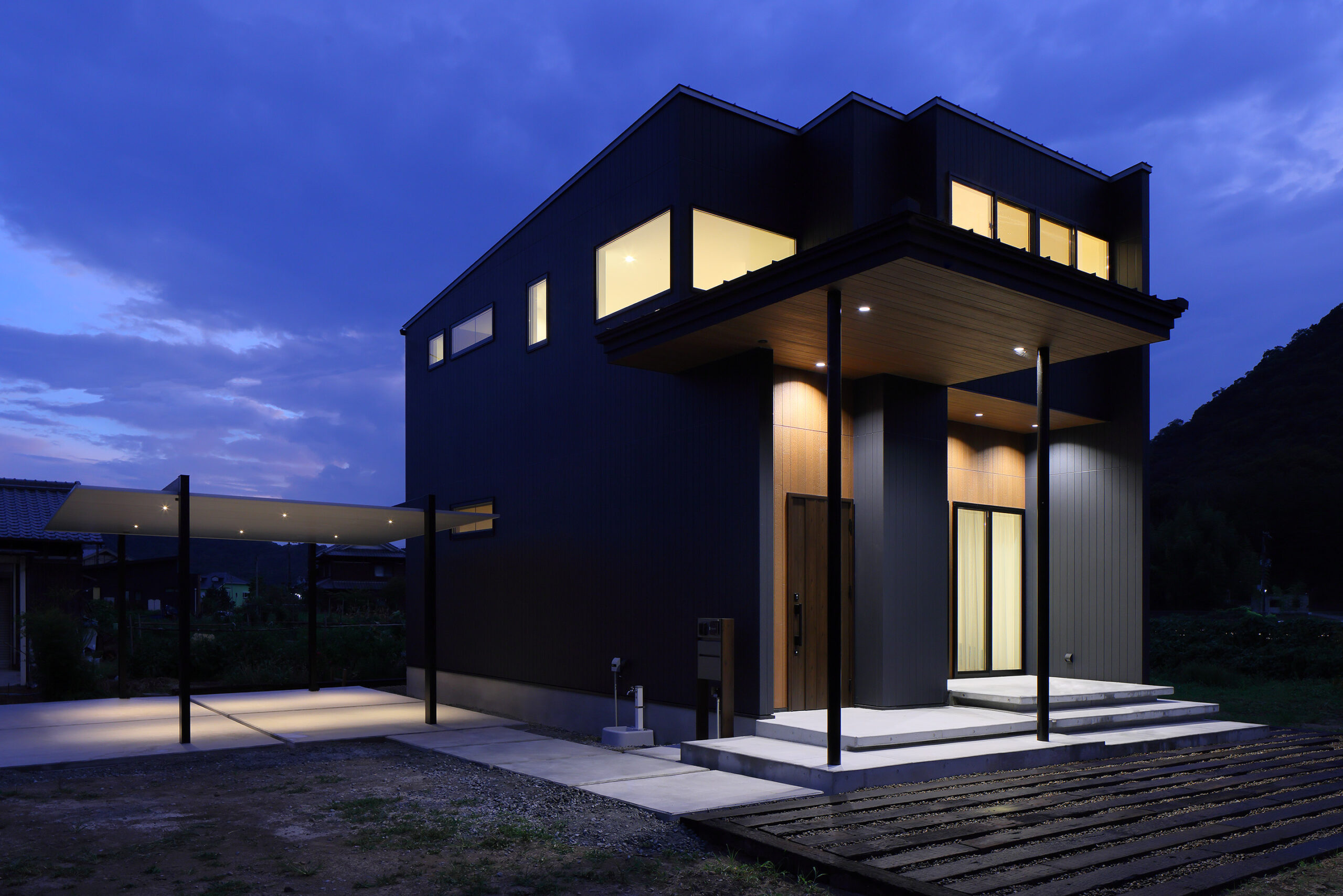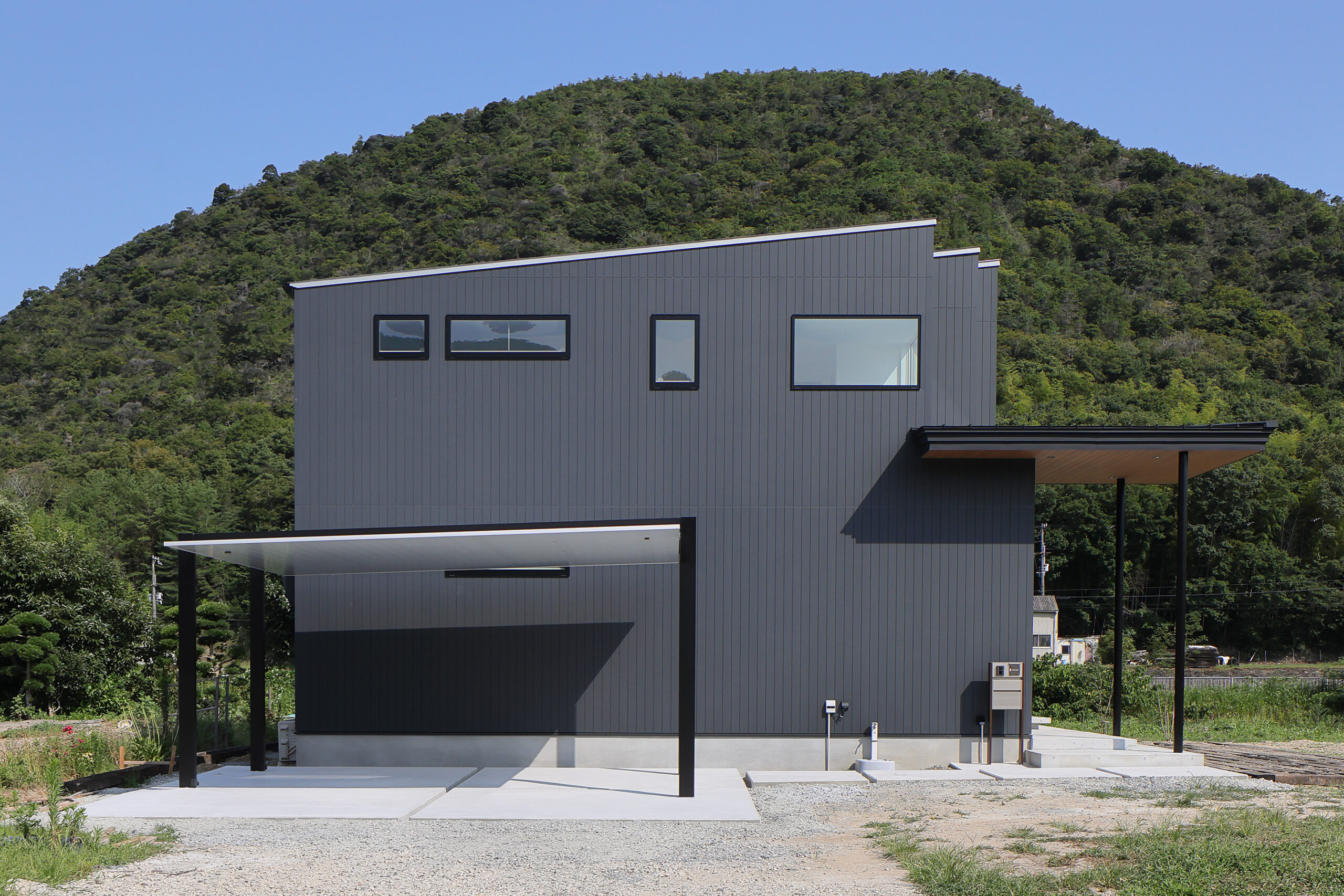 自然が豊かで広々した敷地に、すっきりとシンプルでかっこいい黒い箱のようなおうちです。