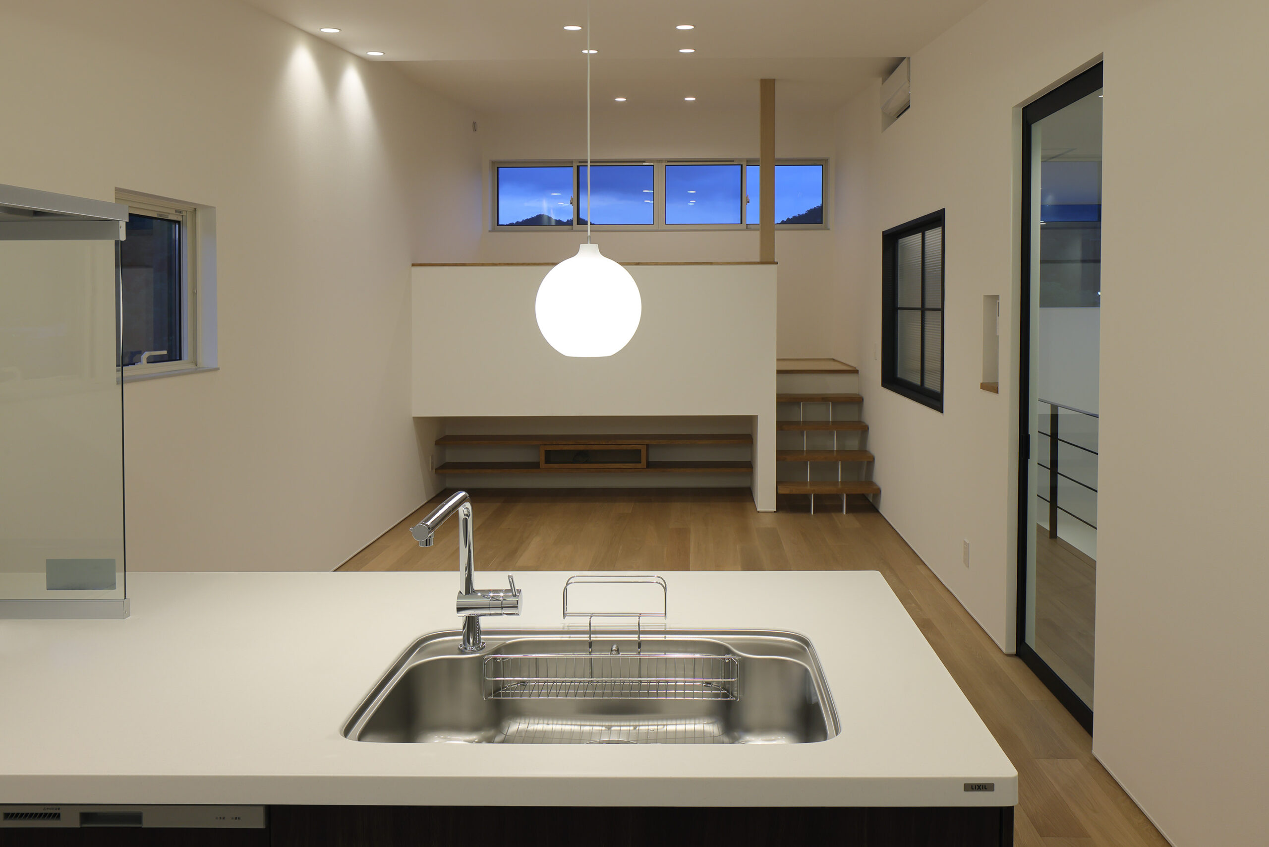 ご要望どおり間取りは2階にリビングと廊下にヌックを配置し、家族みんながゆるやかにつながりほどよい距離感を生む配置にしました。すぐ隣に建物がない立地なのでカーテンを閉め切ったりすることもなく、光をたっぷり取り込みつつ開放感たっぷりに過ごしていただけます。