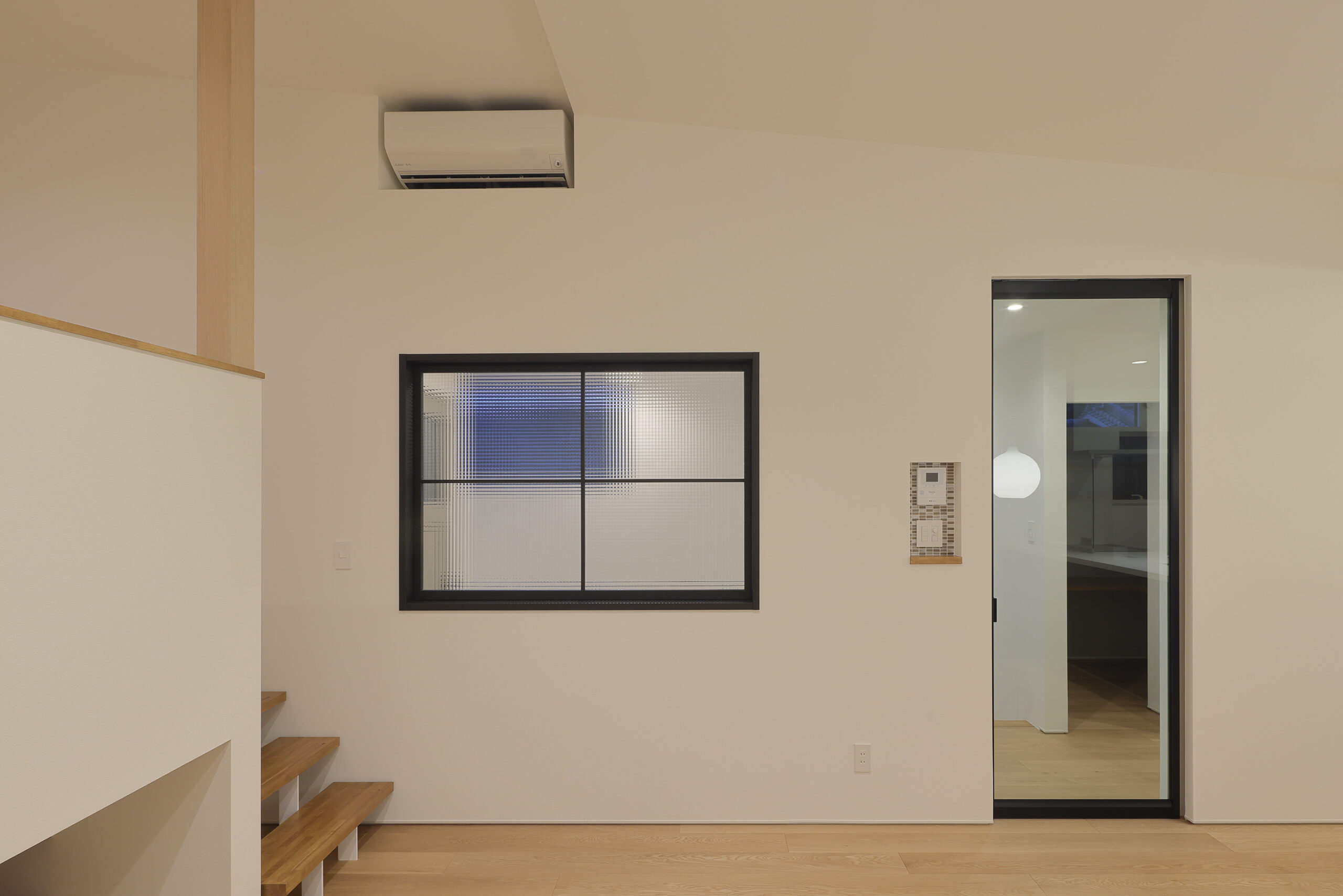 リビングの入り口にはすっきりとスタイリッシュな三協アルミのAMISをつかったり、室内窓を造作したり、見た目もおしゃれで光をしっかり取り込めるよう工夫しました。