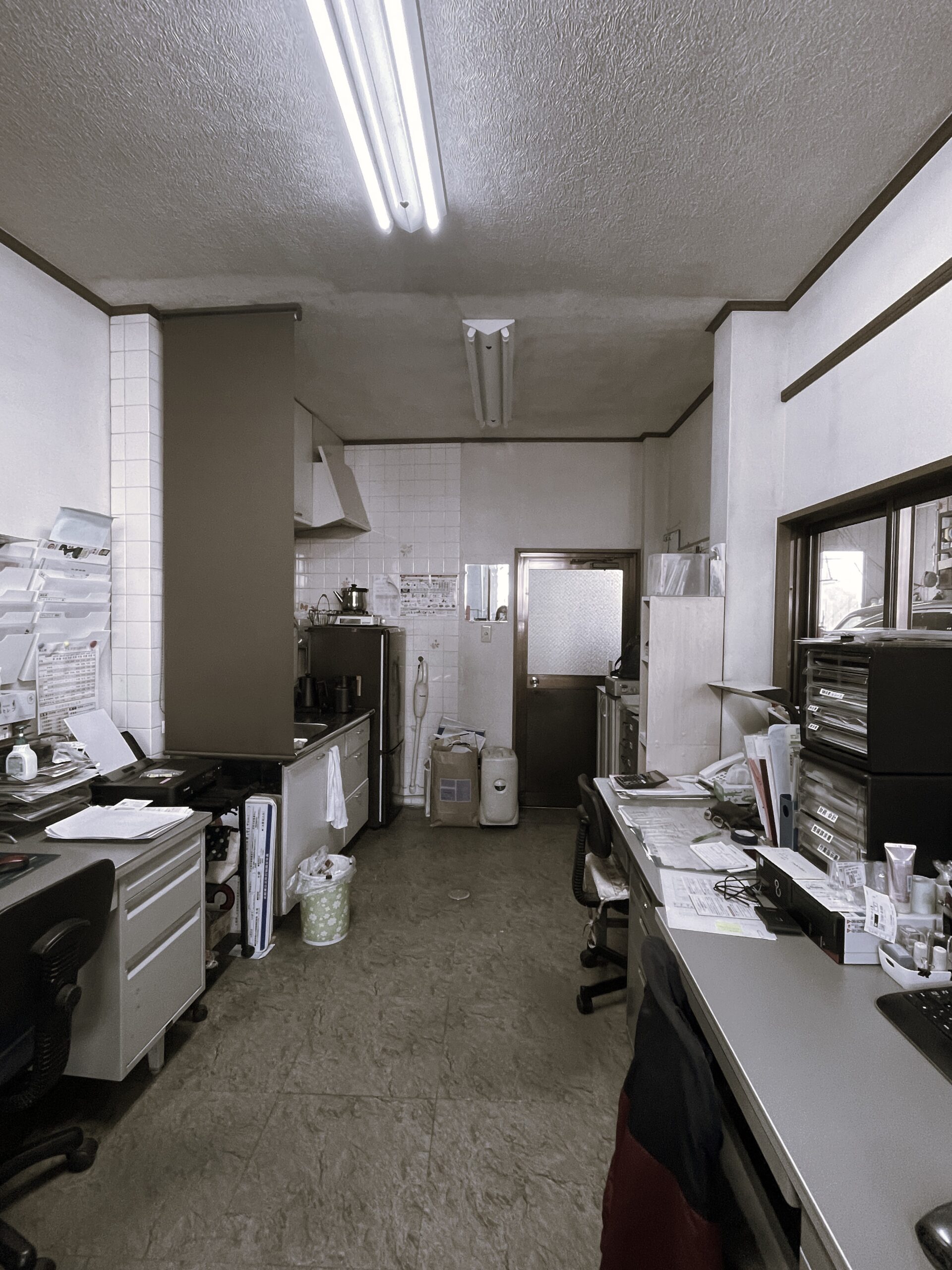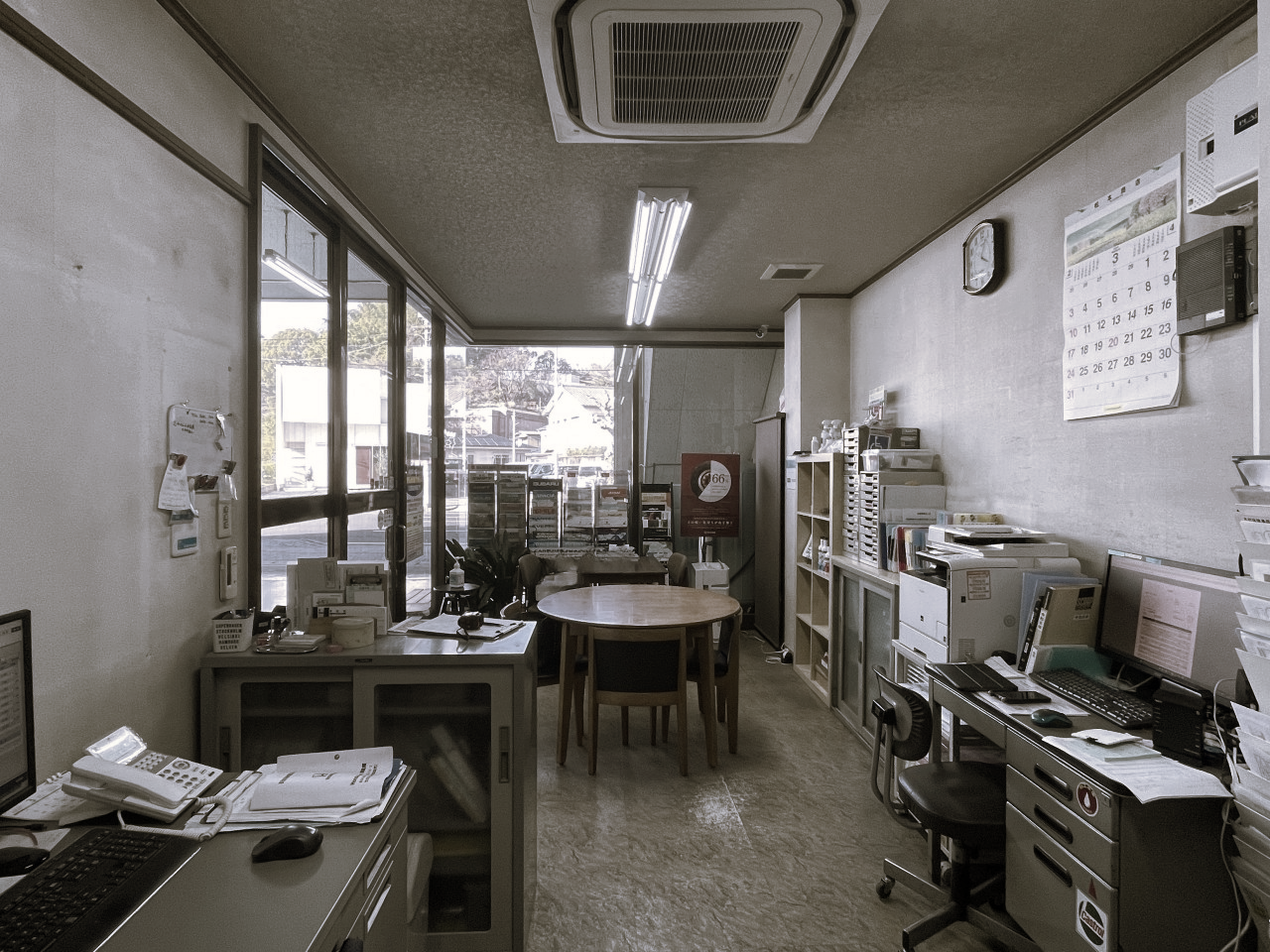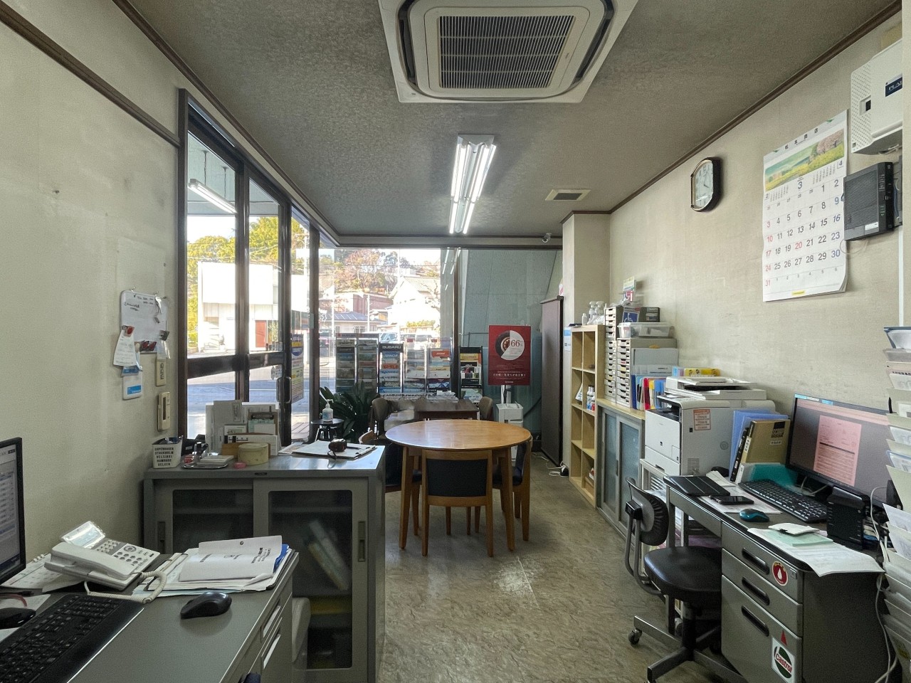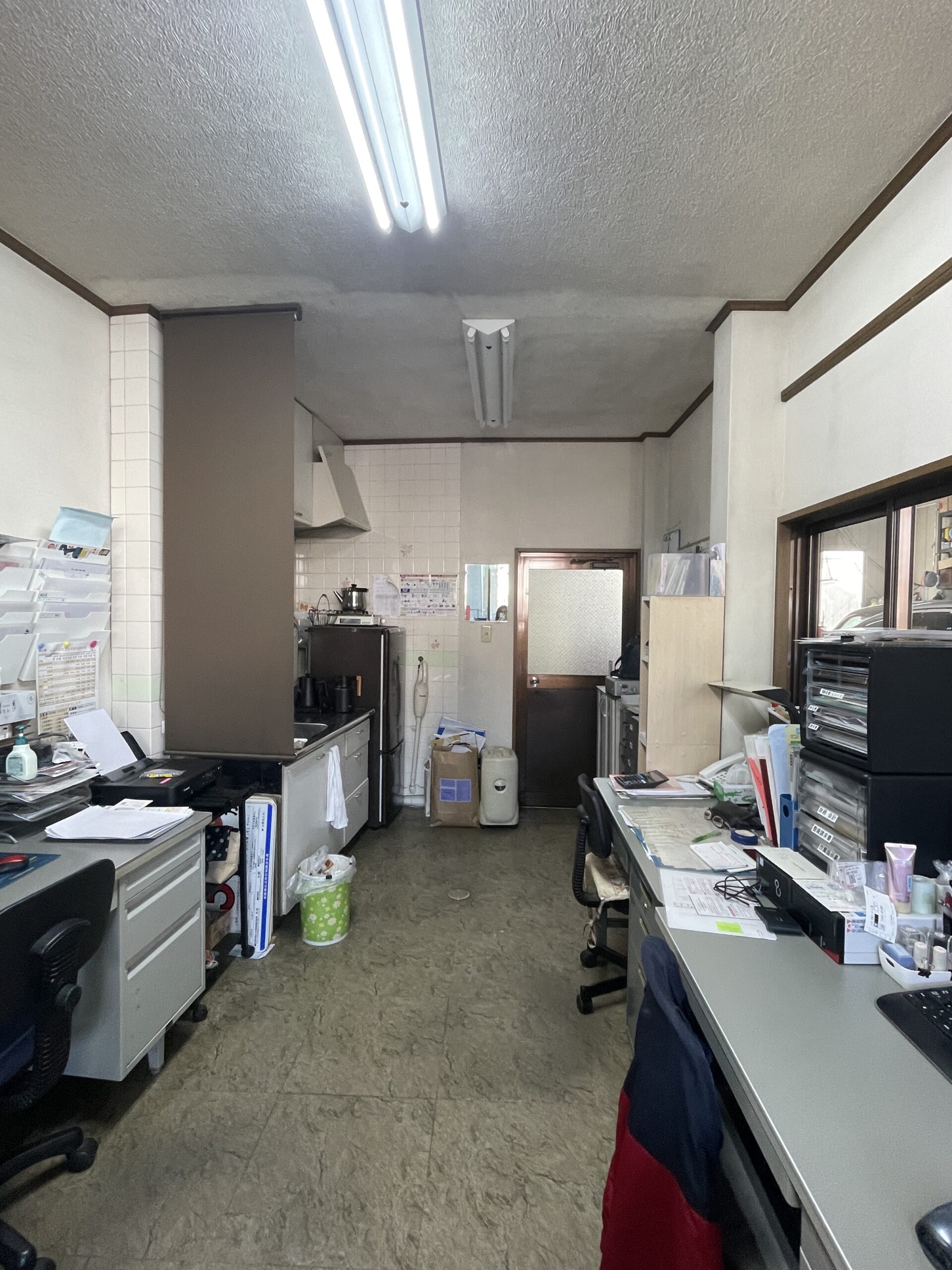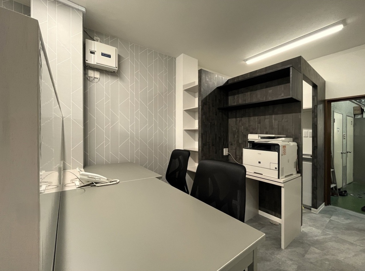 事務所内の内装改装工事をさせていただきました。元は入口からお客様が入ってくると事務所内が丸見えになってしまっていたので、ある程度高さのある収納棚をもうけて来客スペースと事務所スペースを区切り丸見えにならないよう配慮しました。