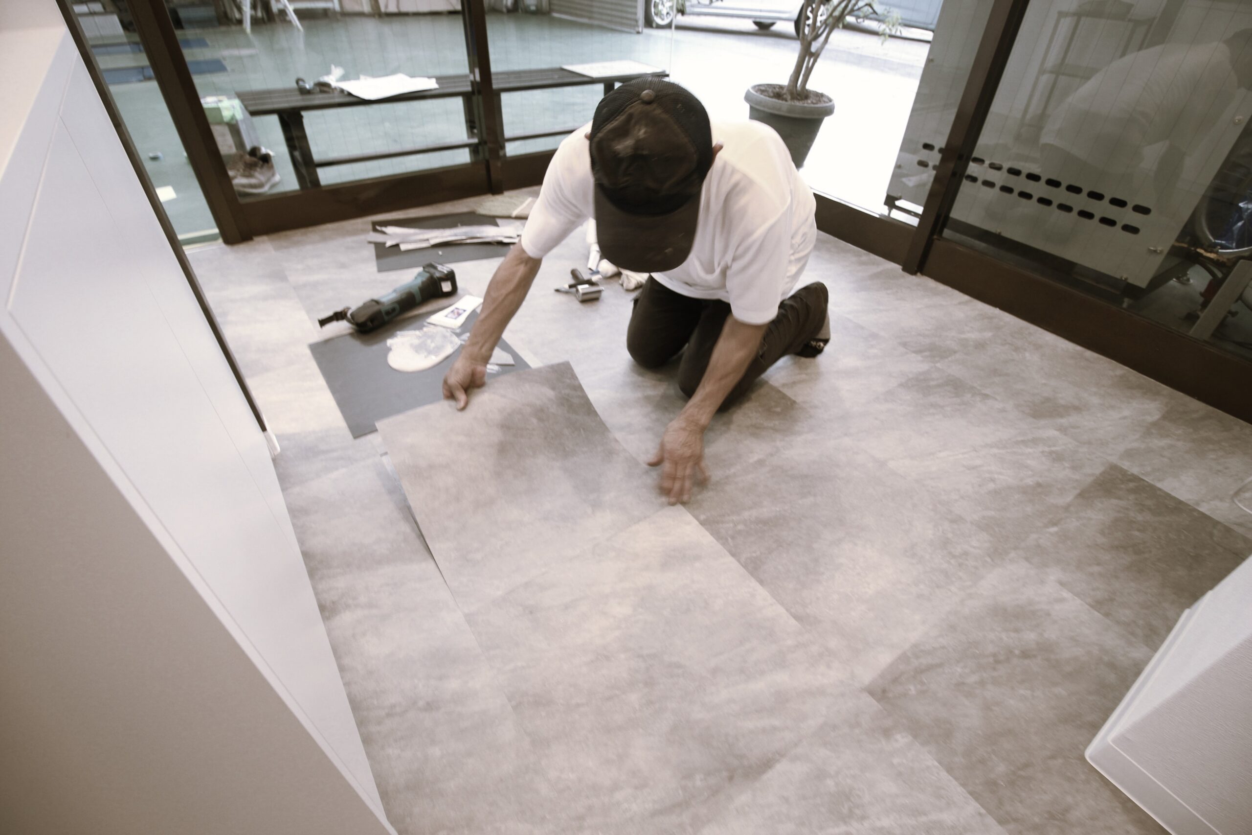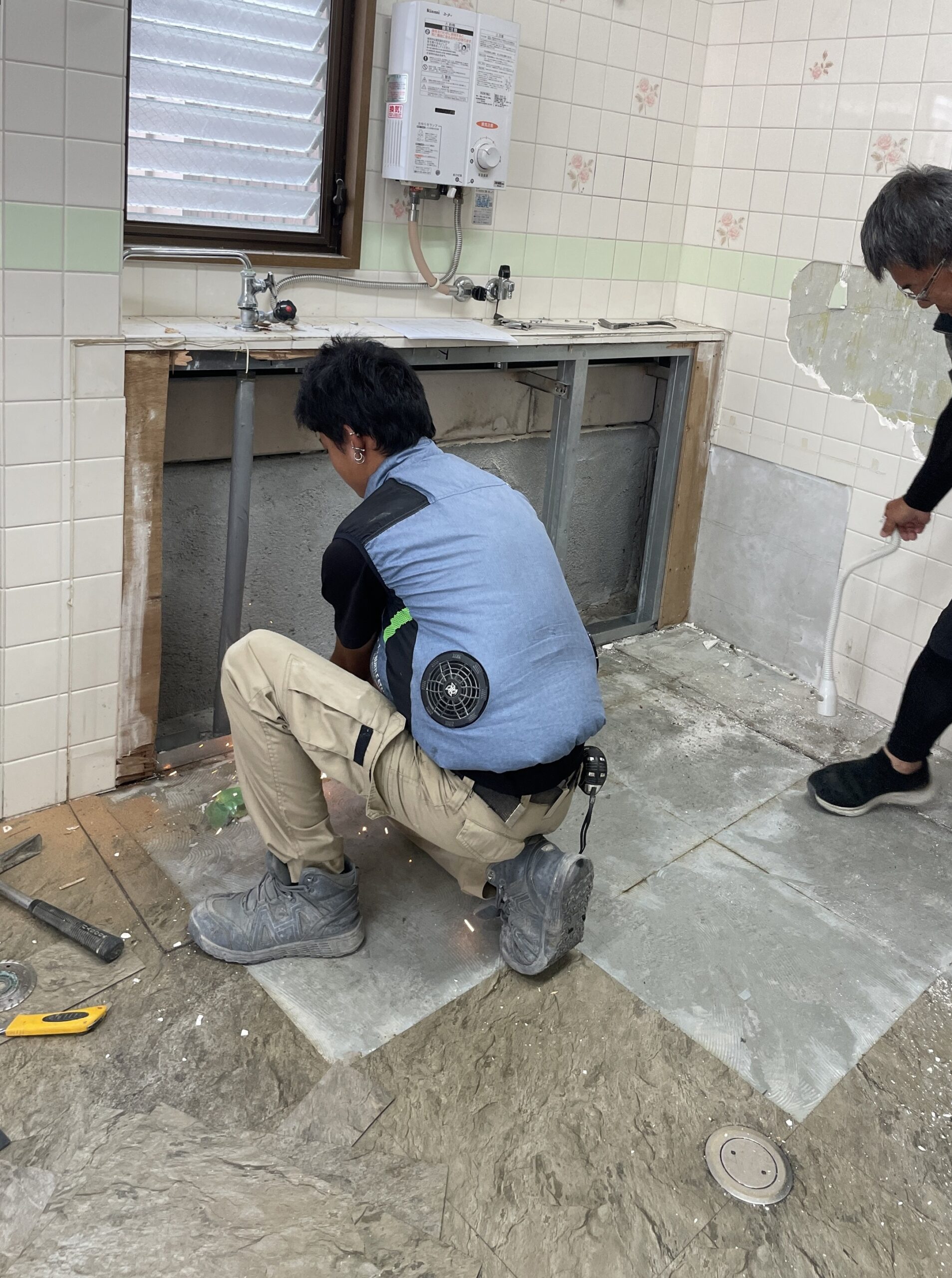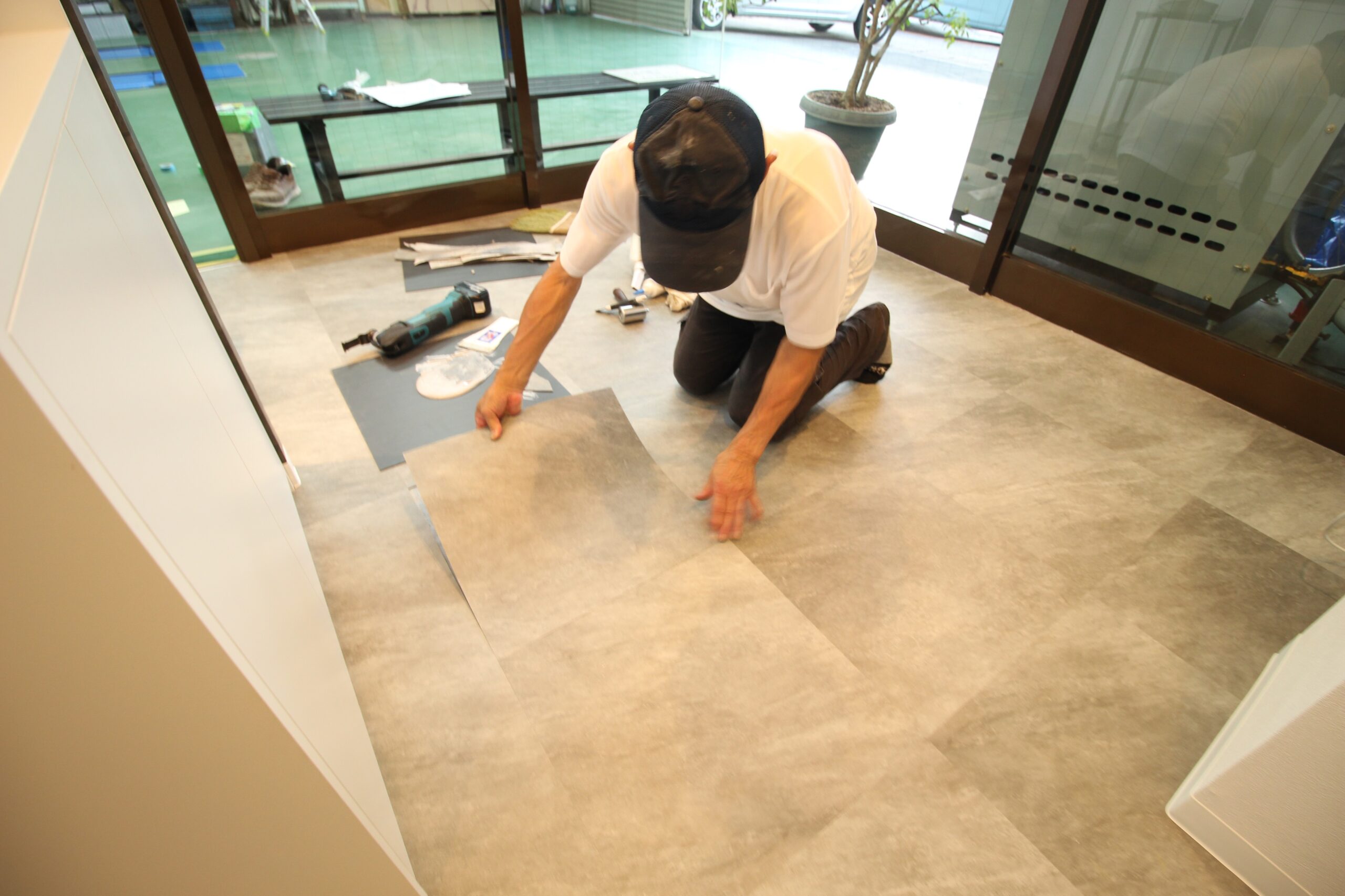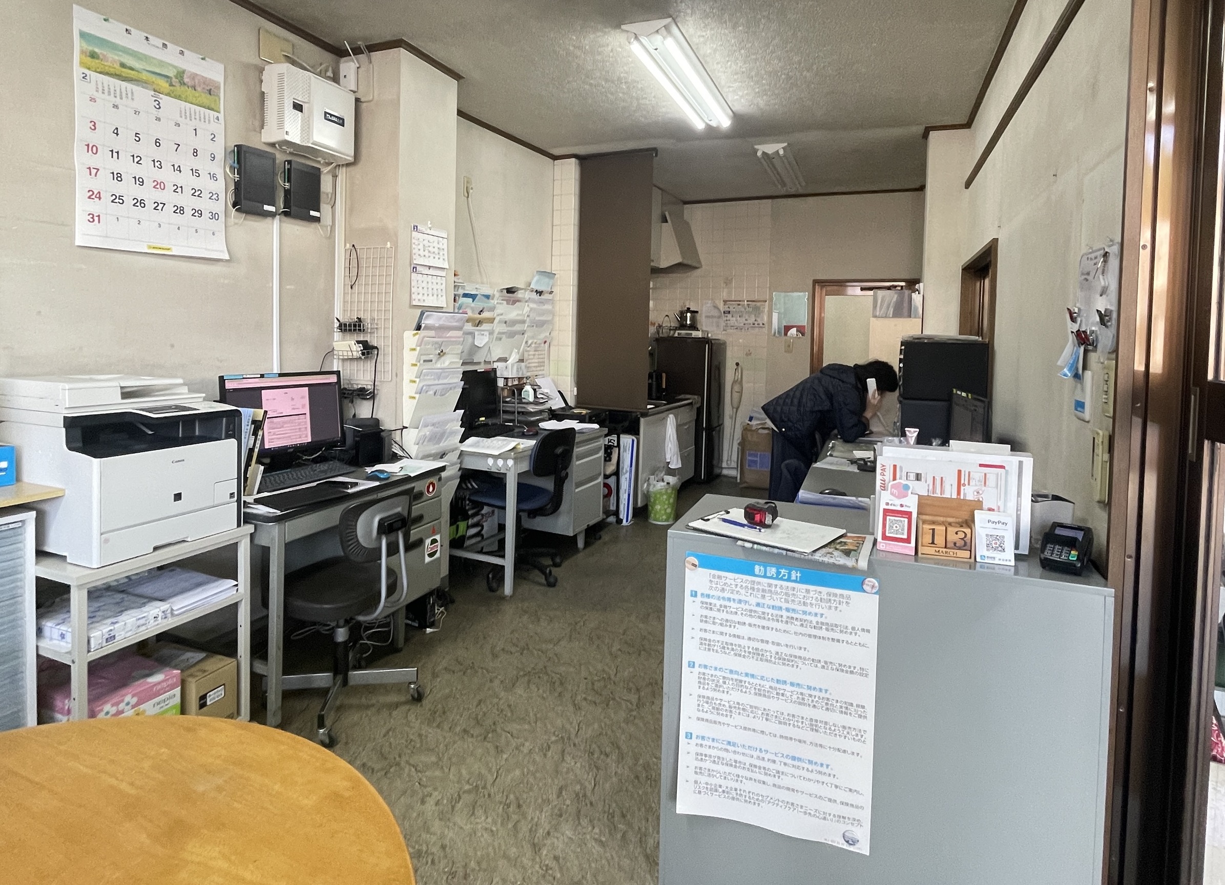 事務所内の内装改装工事をさせていただきました。元は入口からお客様が入ってくると事務所内が丸見えになってしまっていたので、ある程度高さのある収納棚をもうけて来客スペースと事務所スペースを区切り丸見えにならないよう配慮しました。