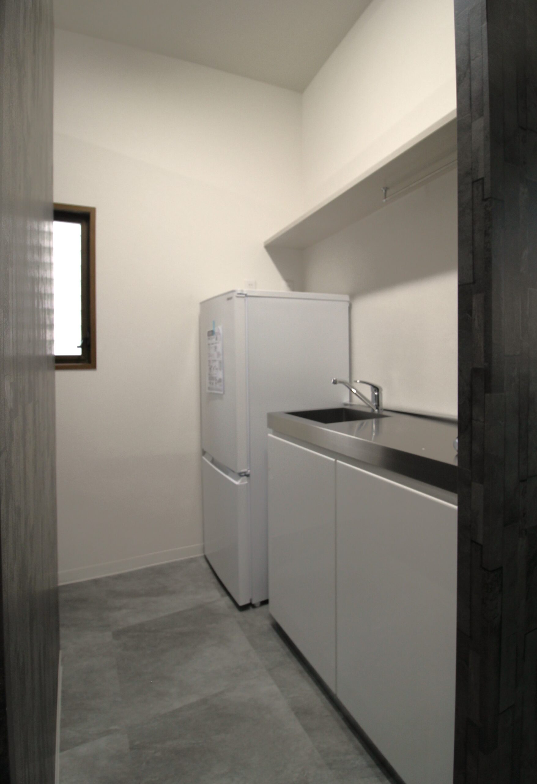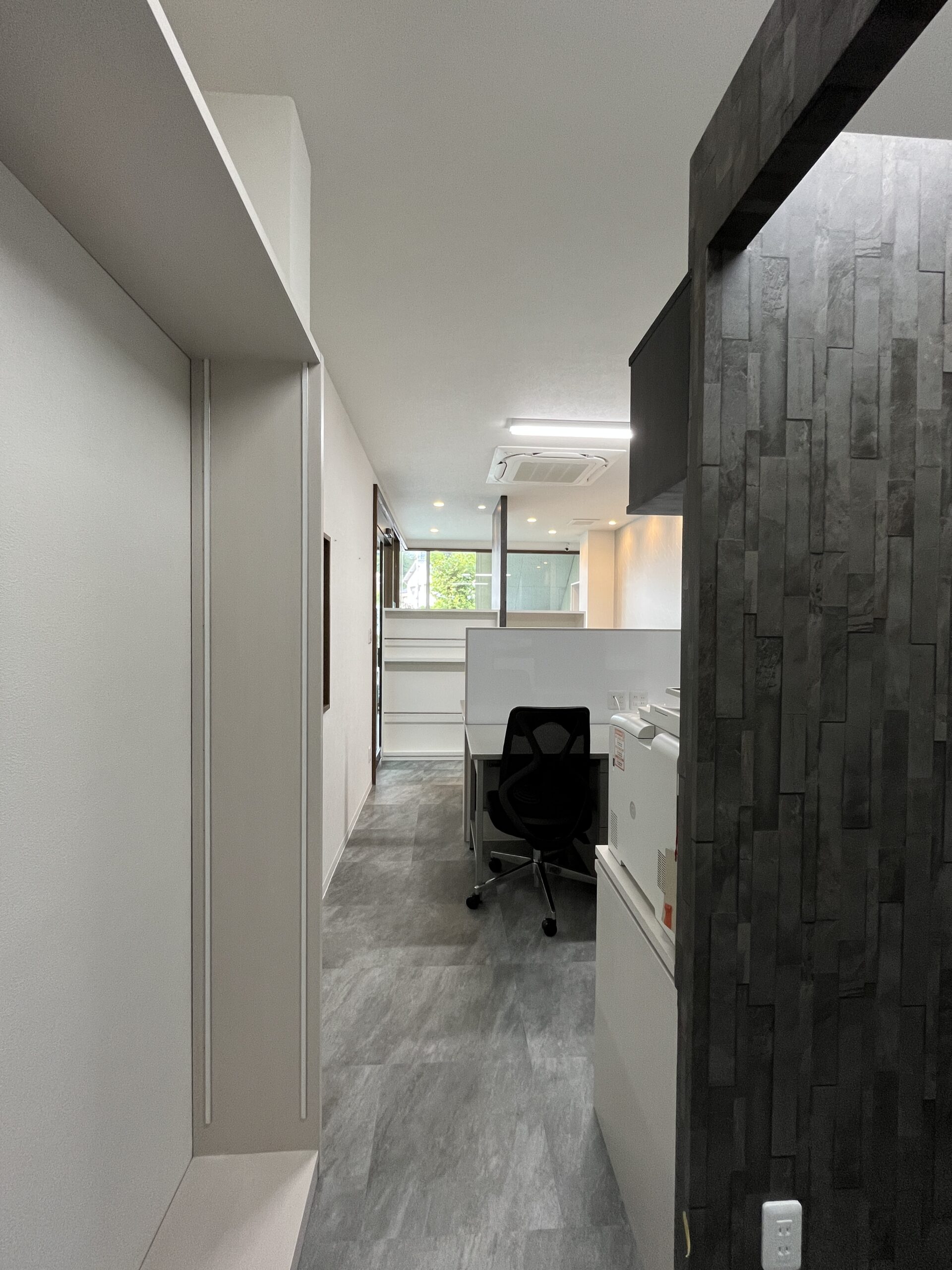 丸見えになっていたキッチンコーナーでしたが、今回壁をつくって独立させ、お客様から丸見えにならないようにしました。中には冷蔵庫とミニキッチンをそなえて、ちょっとしたお茶出しやスタッフさんの休憩にも使っていただけるようになりました。