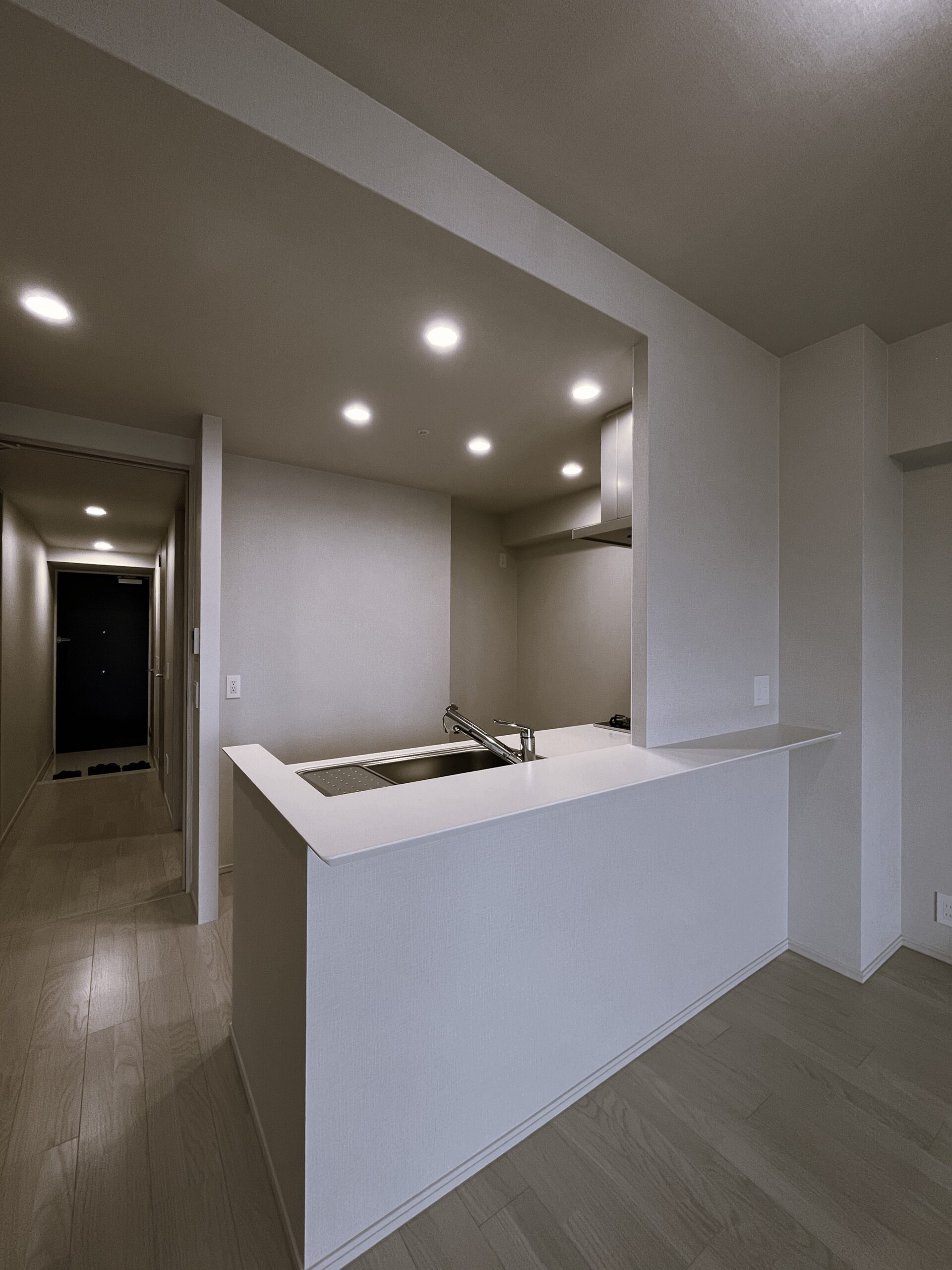 全面が白いクロスでありきたりな内装の新築マンションでしたが、リノベーション工事を経て見映え良くおしゃれな雰囲気にイメージチェンジさせてみました。